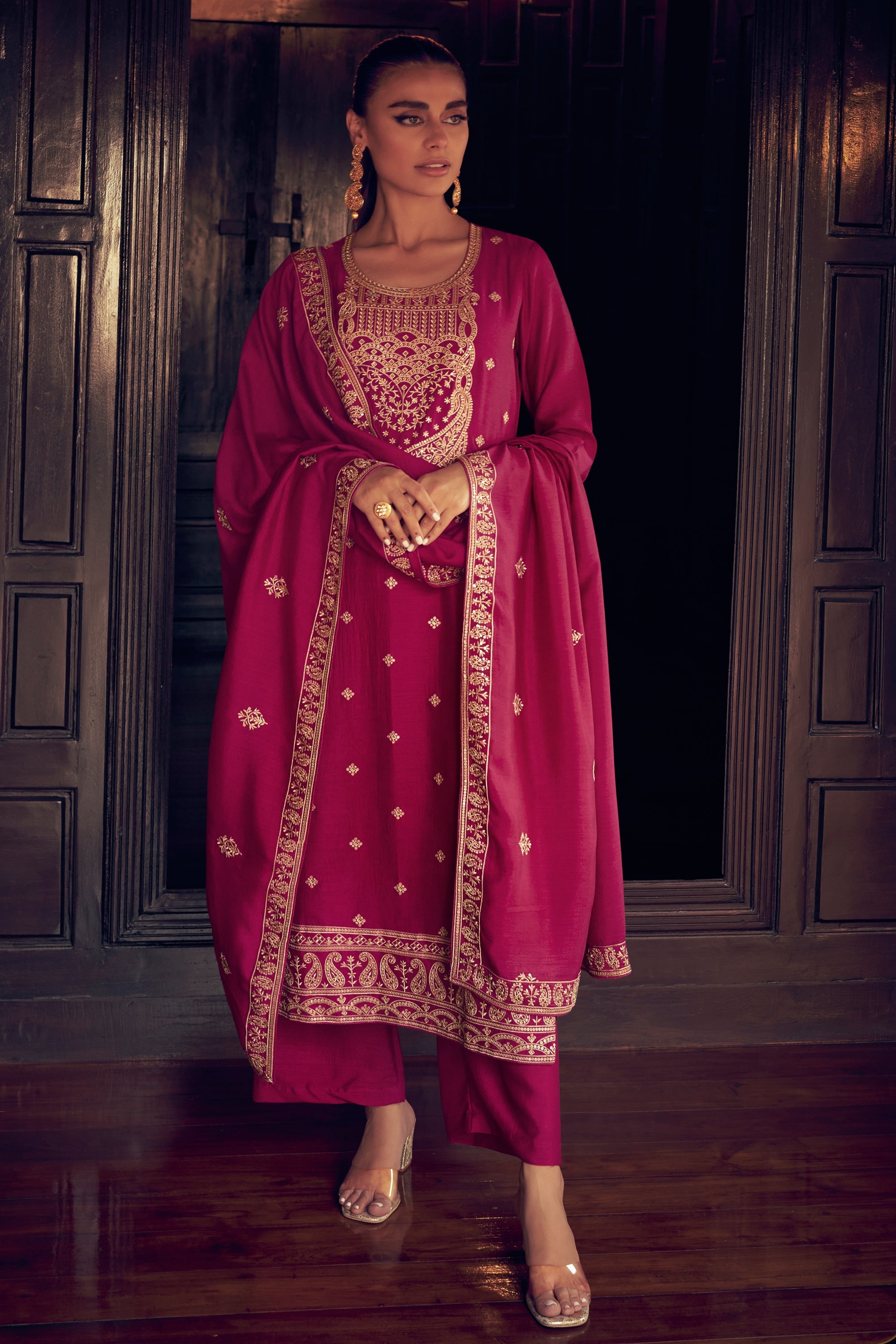 Rani Color Art Silk Fabric Embroidered Function Wear Straight Cut Long Palazzo Salwar Kameez