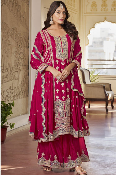 Transform your bridal wardrobe with our Embroidered Chinon Fabric Readymade Palazzo Salwar Kameez, a gem from our Bridal Collection. This gorgeous outfit features delicate embroidery on premium Chinon fabric, showcasing impeccable craftsmanship. Available in size 44, it combines a traditional salwar kameez with fashionable palazzo pants for an exquisite ensemble. Perfect for the bride who wants to blend classic elegance with modern style. Make your special moments unforgettable with this stunning attire.