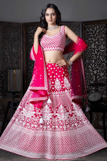 Rani Color Exquisite Embroidered Readymade Lehenga In Satin Silk Fabric