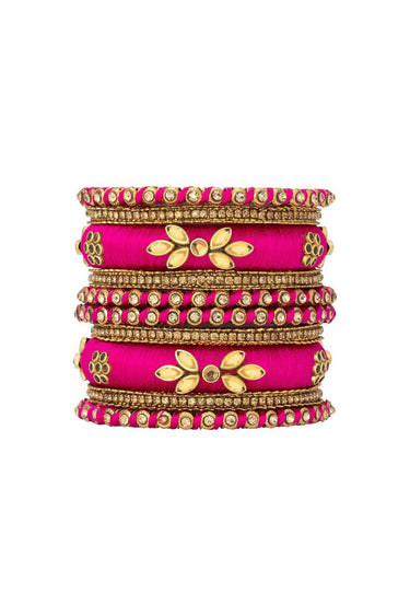 Rani Color Handmade Silk Thread Designer Bangle Set For Function