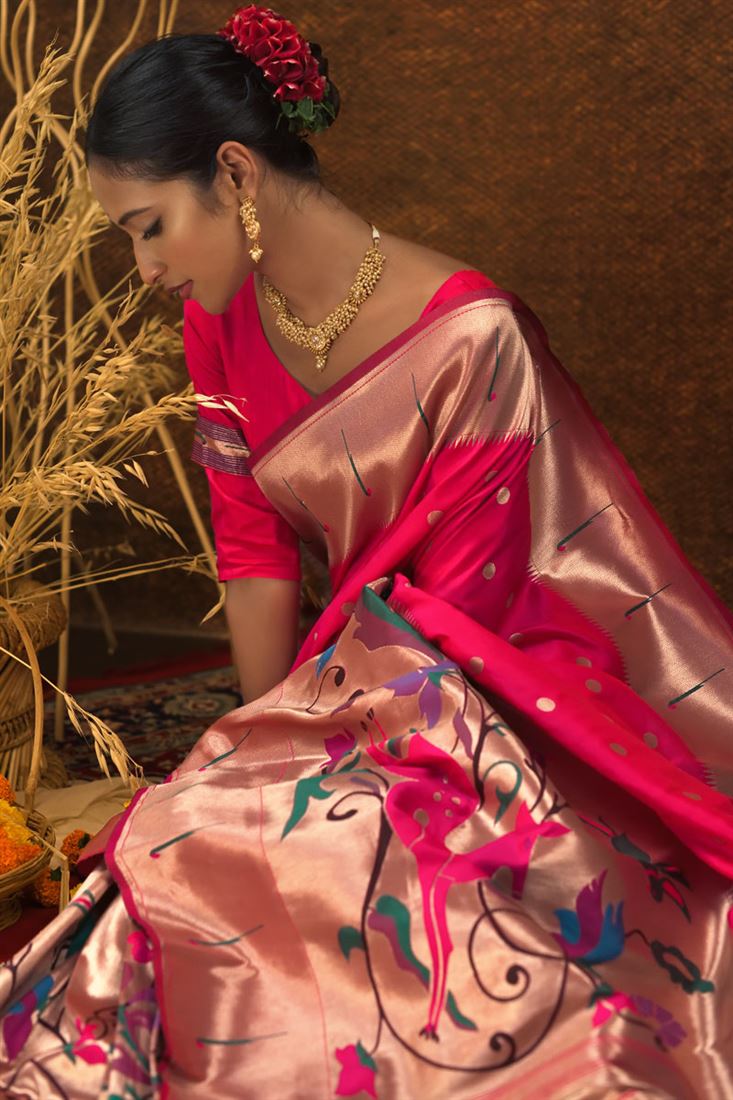 Rani Color Paithani Silk Weaving Work Beatific Saree