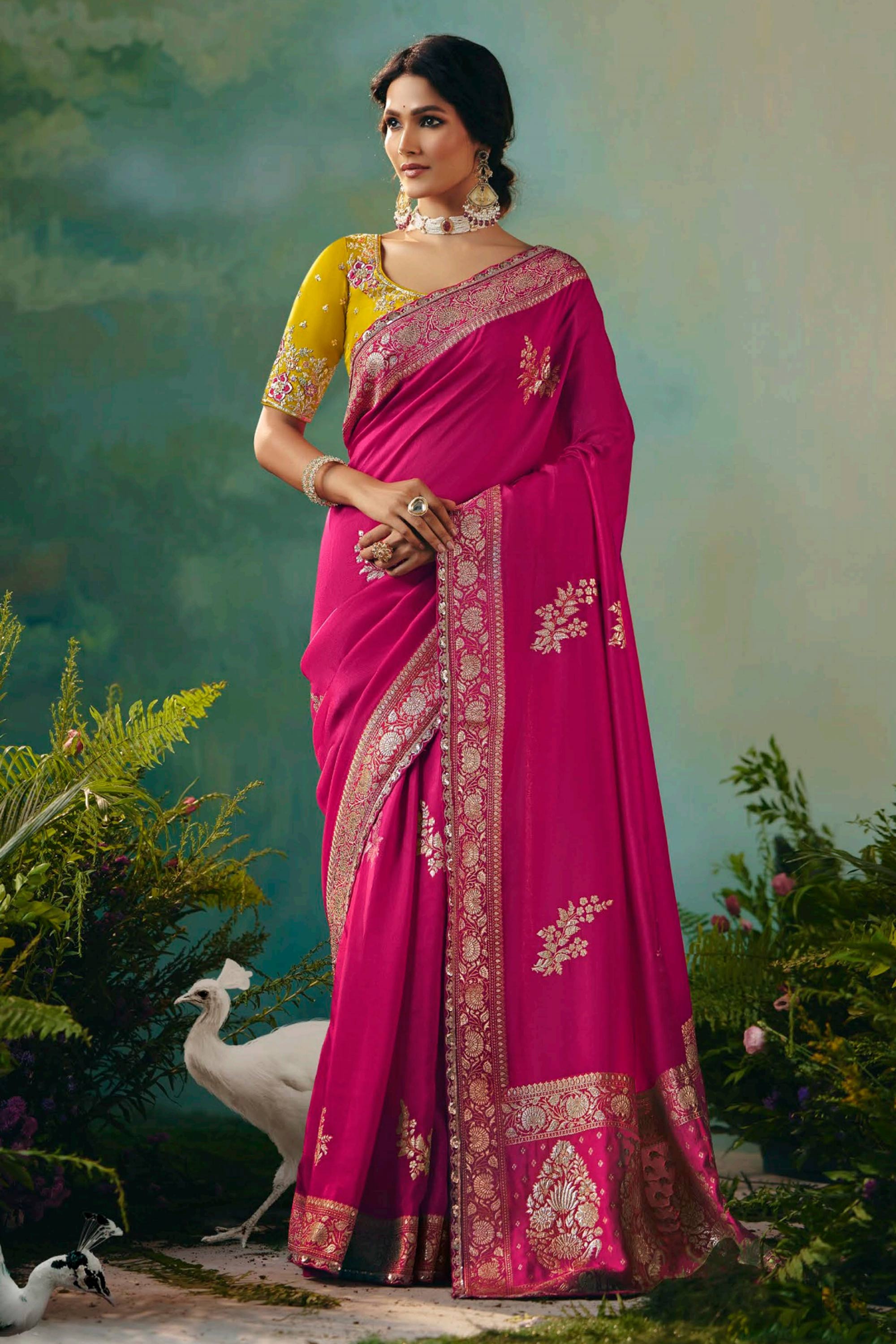 Rani Viscose Silk Zari Border Work Saree For Sangeet Wear