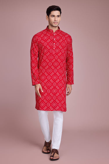 Rayon Fabric Function Wear Readymade Red Color Kurta For Men