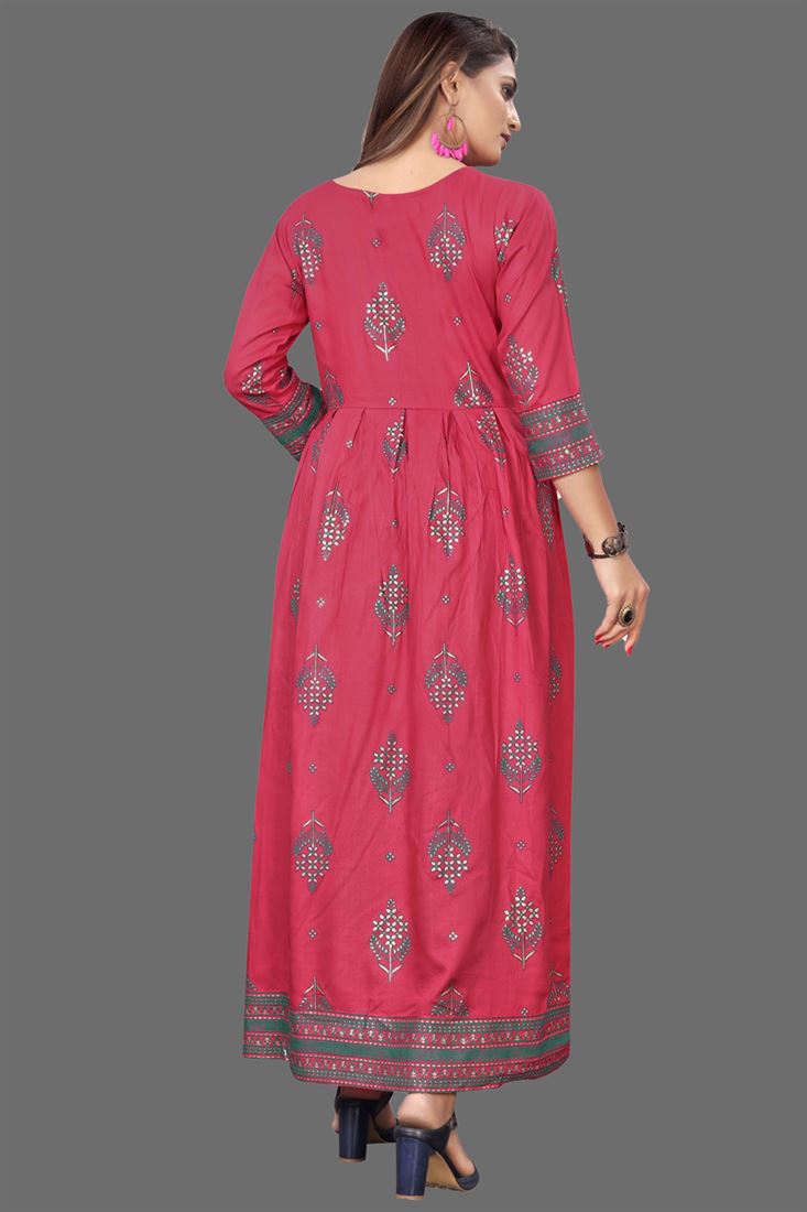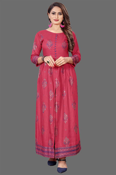 Rayon Fabric Pink Color Casual Wear Beautiful Foil Printed Work Readymade Kurti