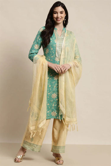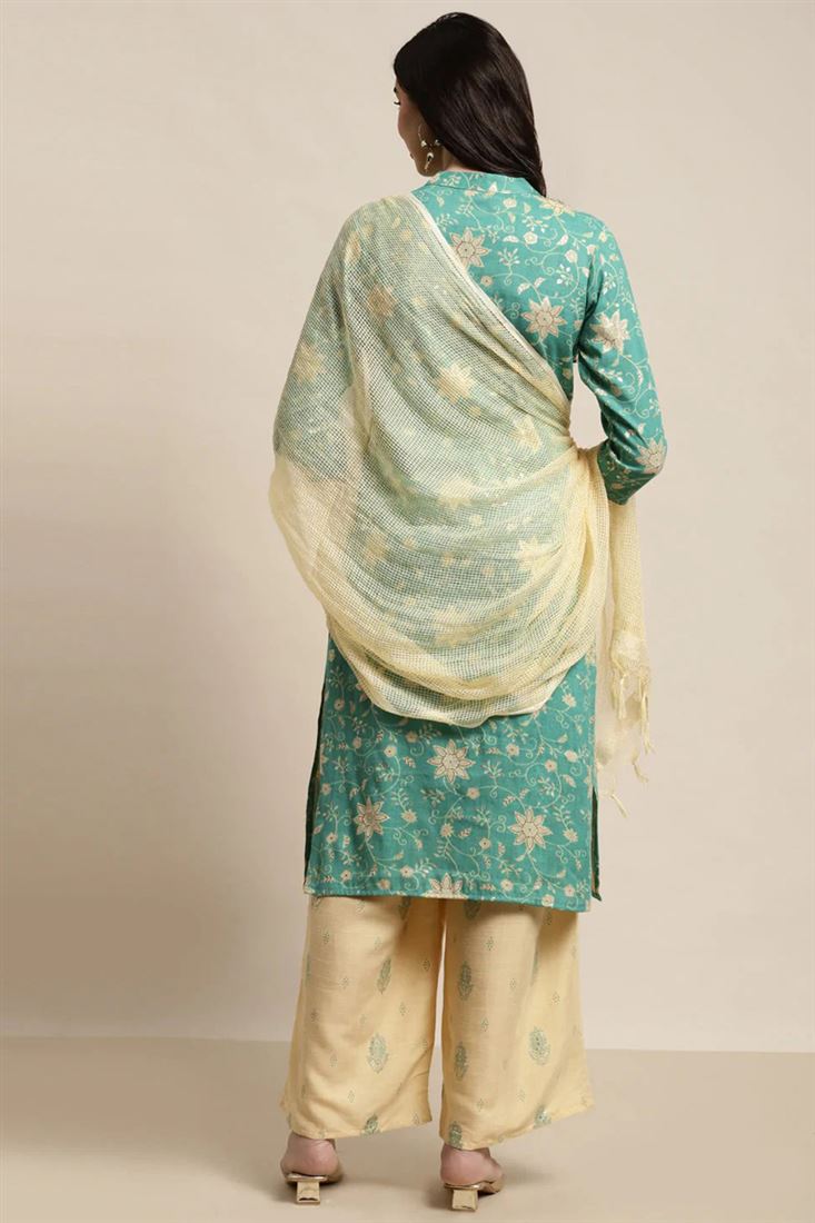 Rayon Fabric Vivacious Top Bottom Dupatta Set In Sea Green Color