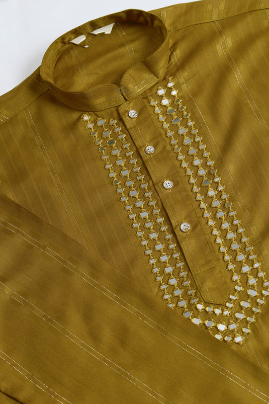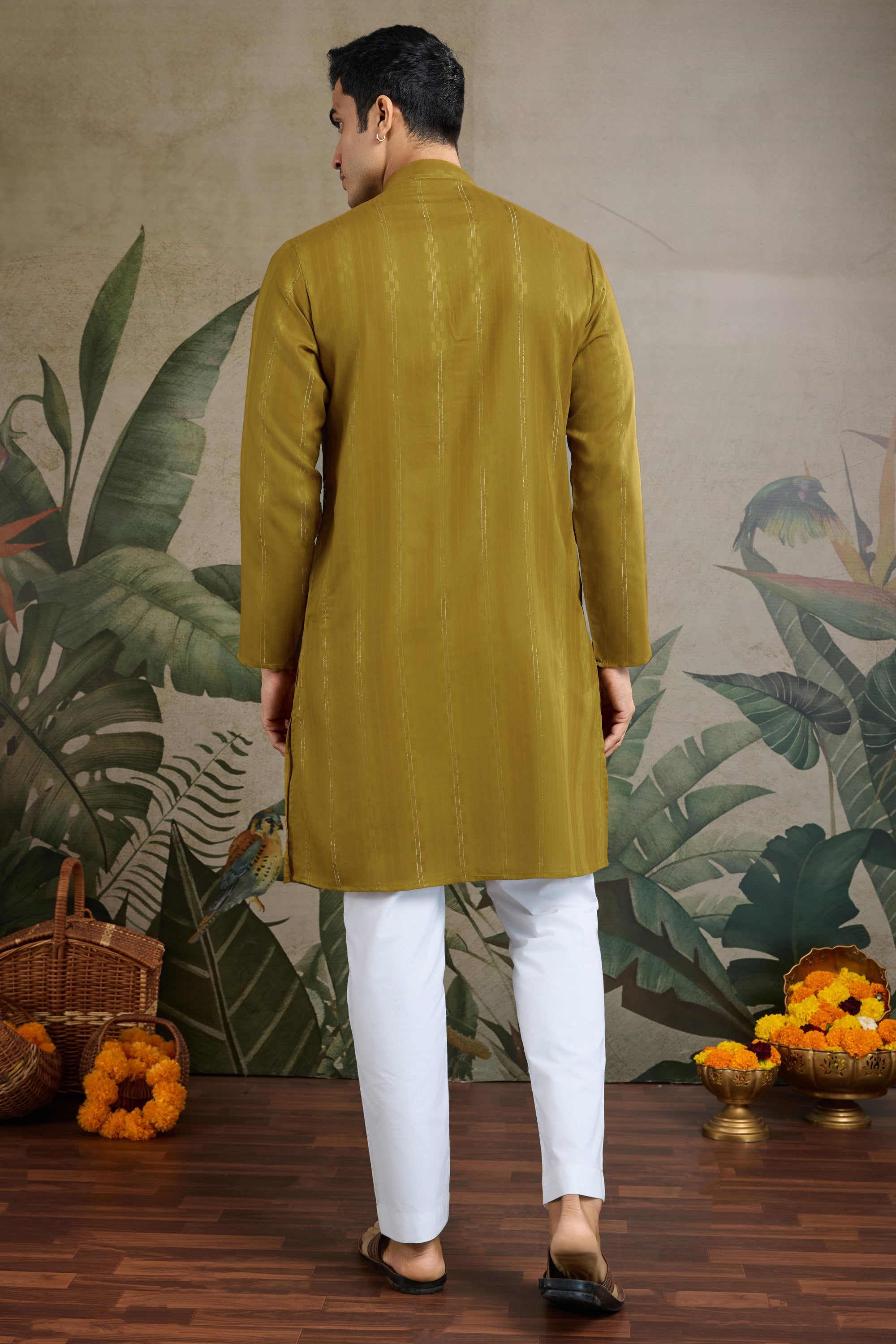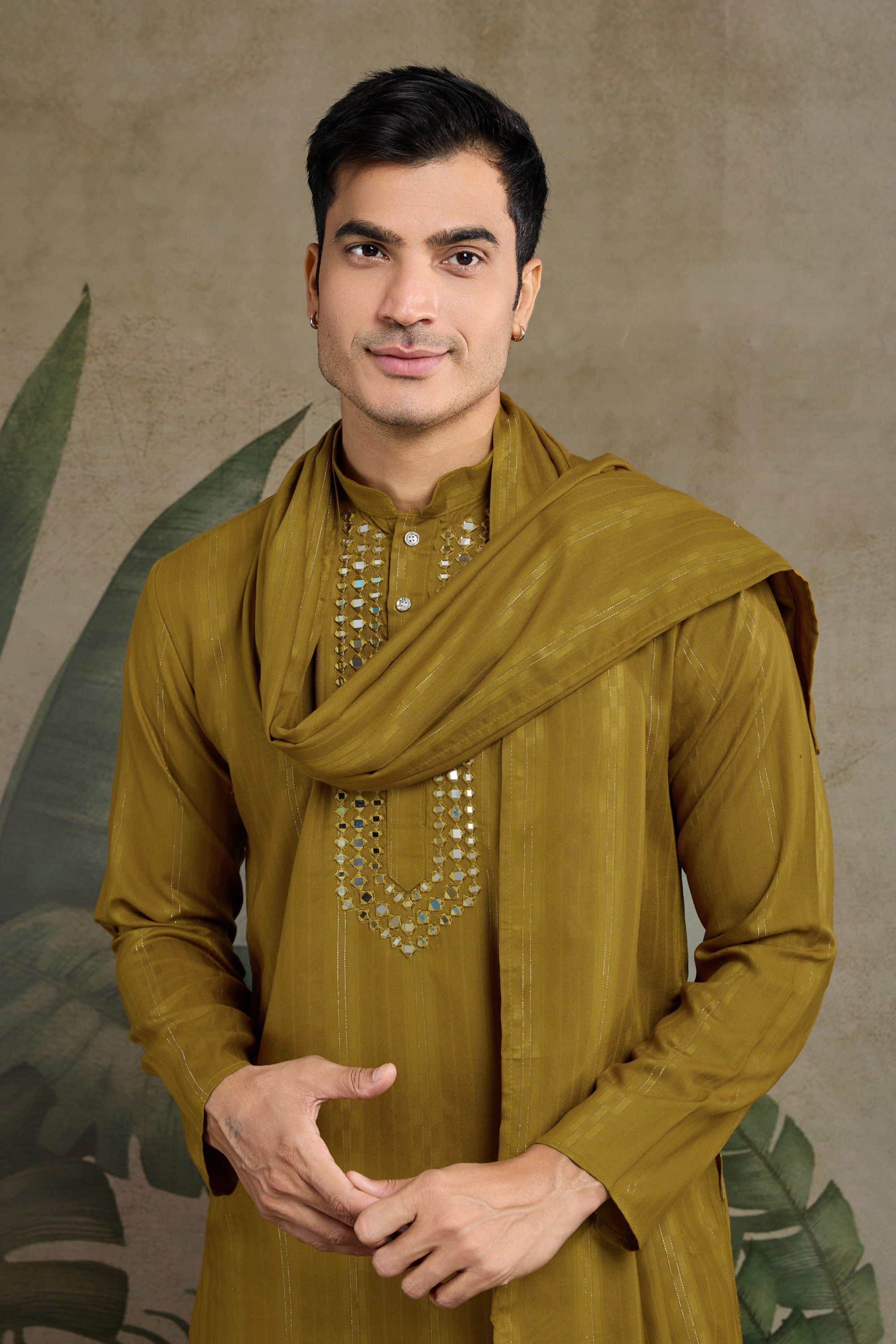 Rayon Green Readymade Stunning Kurta For Men With Dupatta