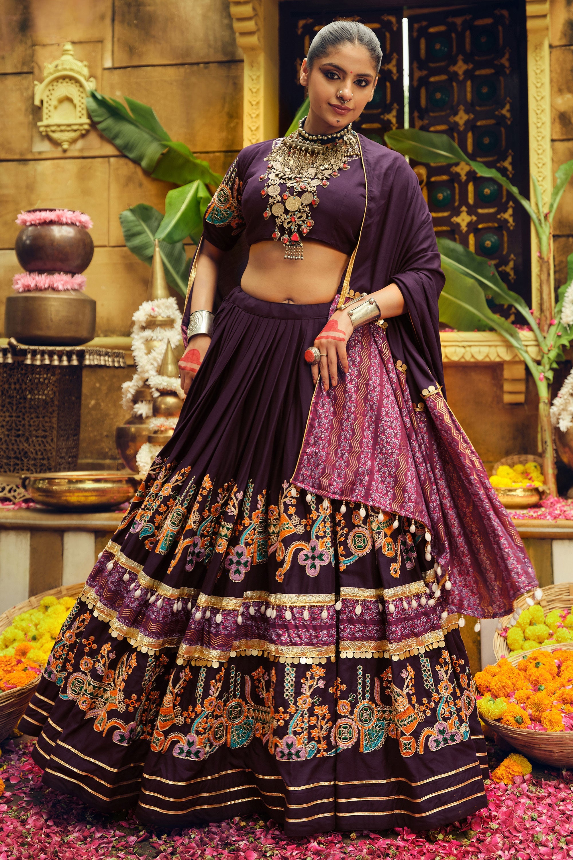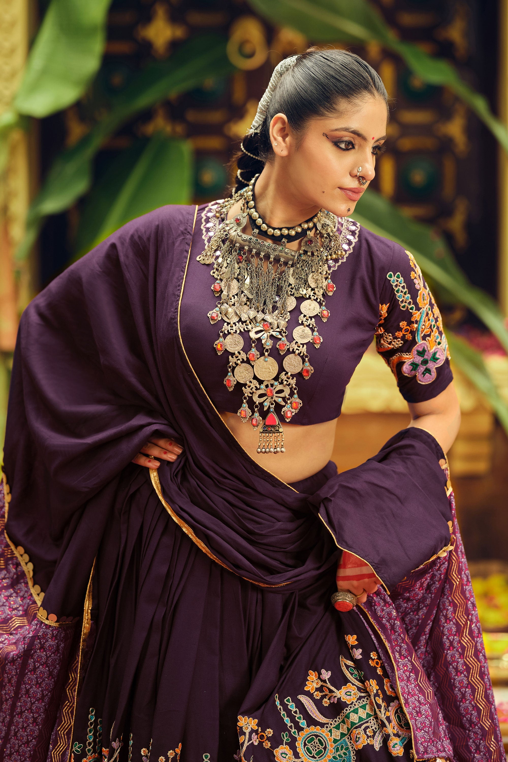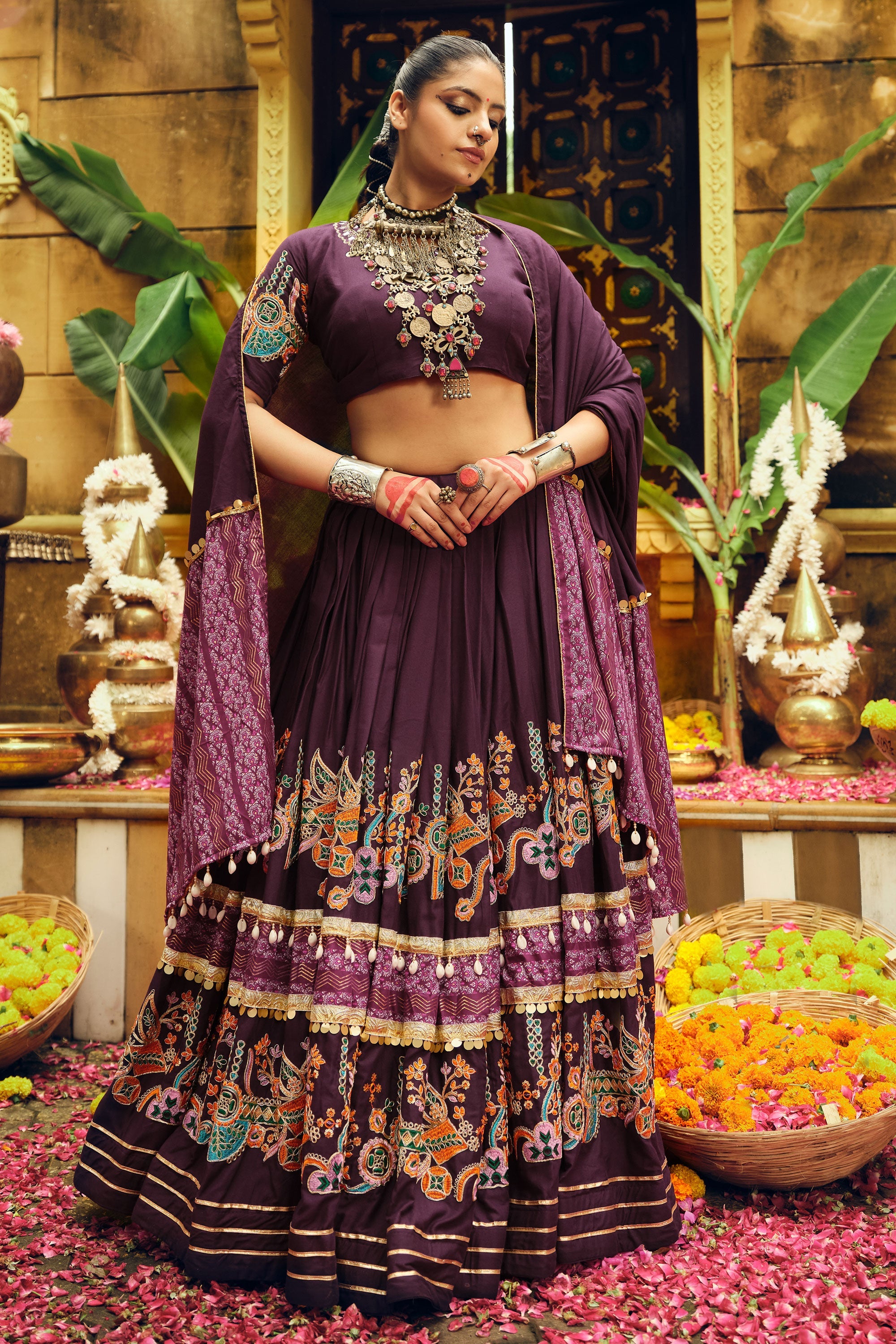 Rayon Purple Foil Gamthi Print Navratri Special Chaniya Choli