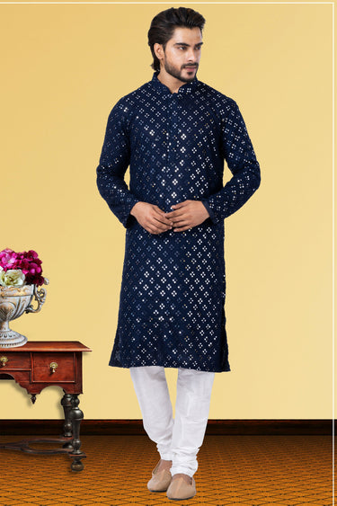 Readymade Men Kurta Pyjama In Navy Blue Color
