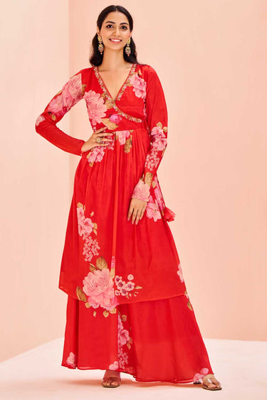 Red Color Chinon Fabric Beauteous Kurti With Bottom