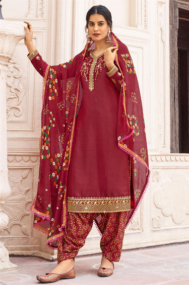 Red Color Glittering Crepe Fabric Festival Style Patiala Suit