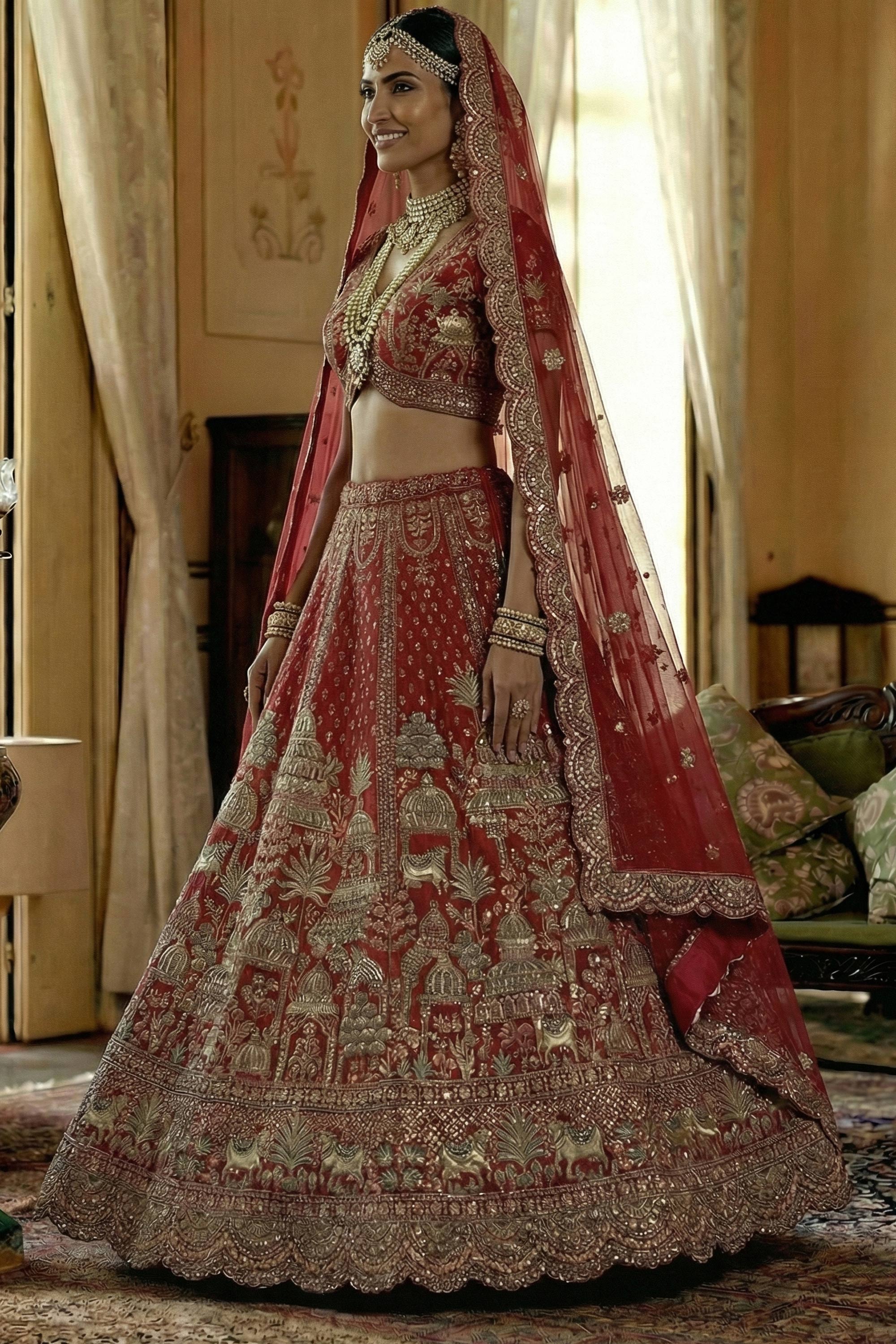Red Heavy Embroidered Silk Bridal Lehenga Choli