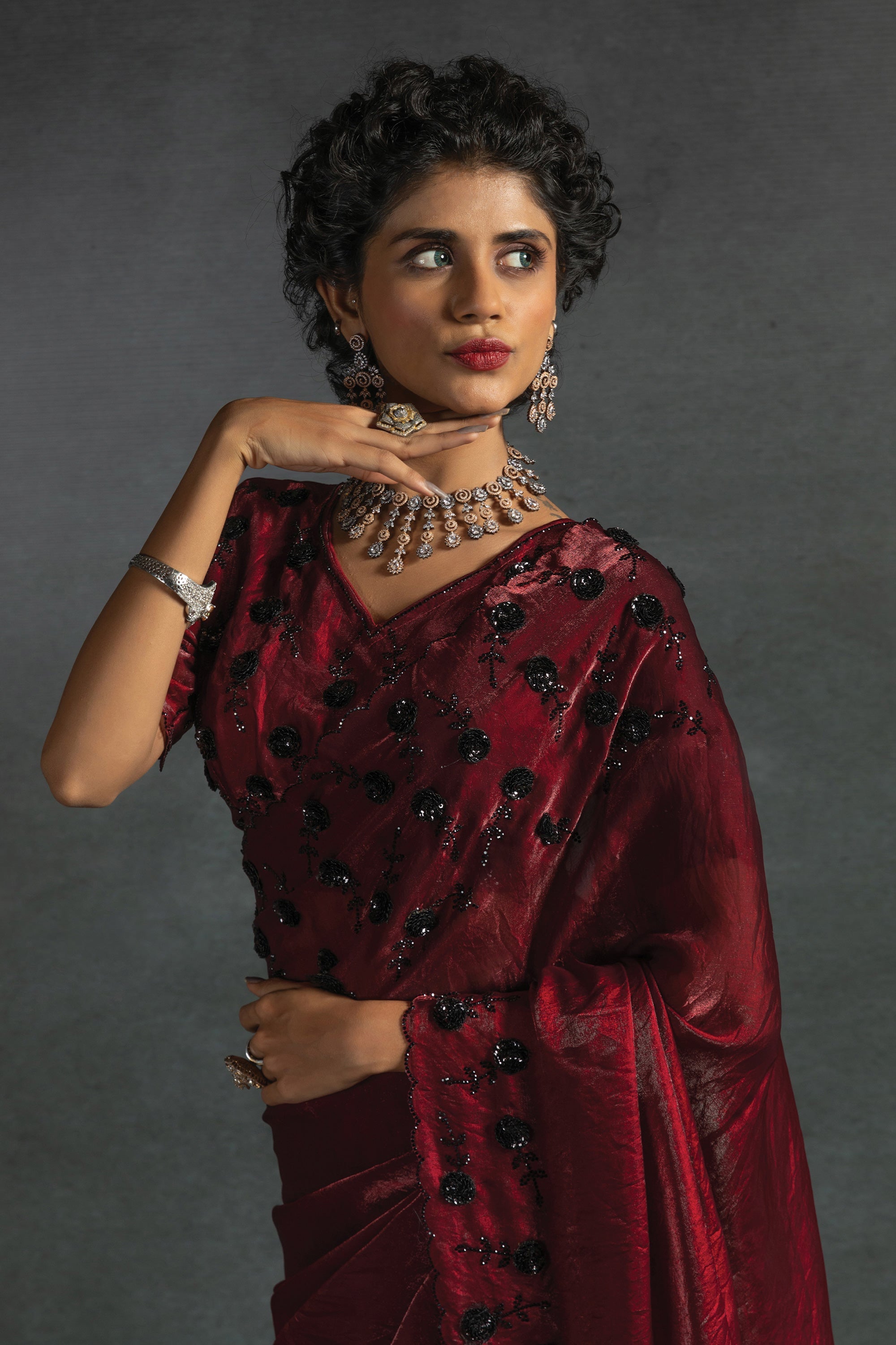 Transform your party look with this Navy Blue Satin Silk Sequins Work Saree. The luxurious satin silk fabric feels smooth against your skin, while the intricate sequins add a touch of sparkle. This saree is perfect for evening gatherings and festive celebrations. Pair it with your favorite accessories to create an unforgettable ensemble. A matching blouse piece is included to complete your sophisticated look. This elegant saree offers a comfortable drape and chic style, making it a must-have for any special occasion.