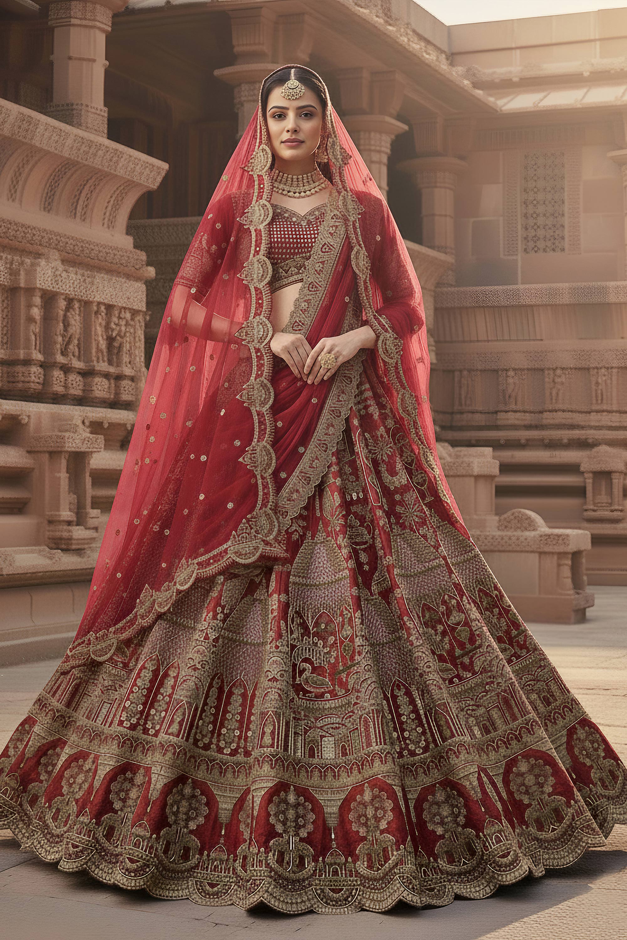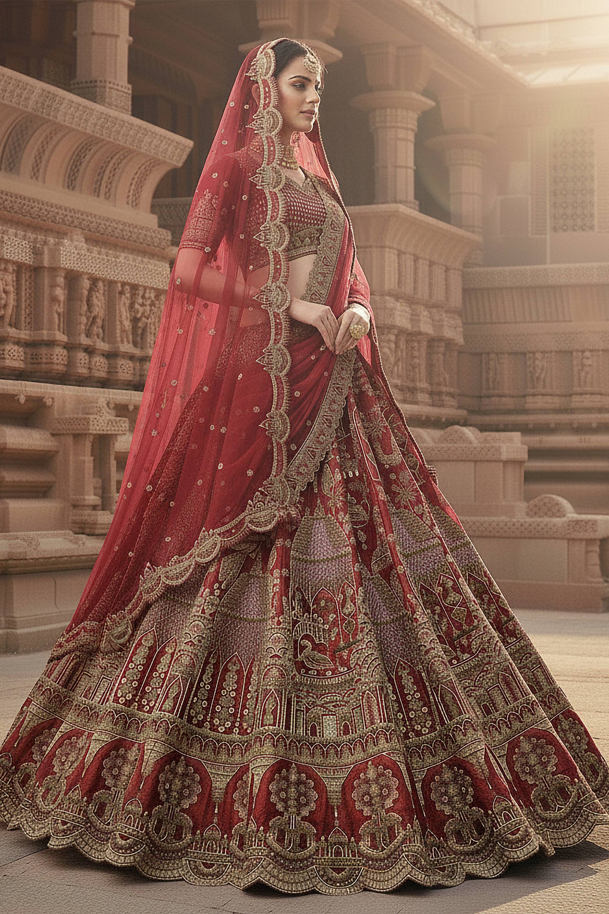 Red Silk Bridal Lehenga Choli With Heavy Embroidered Zardosi Work