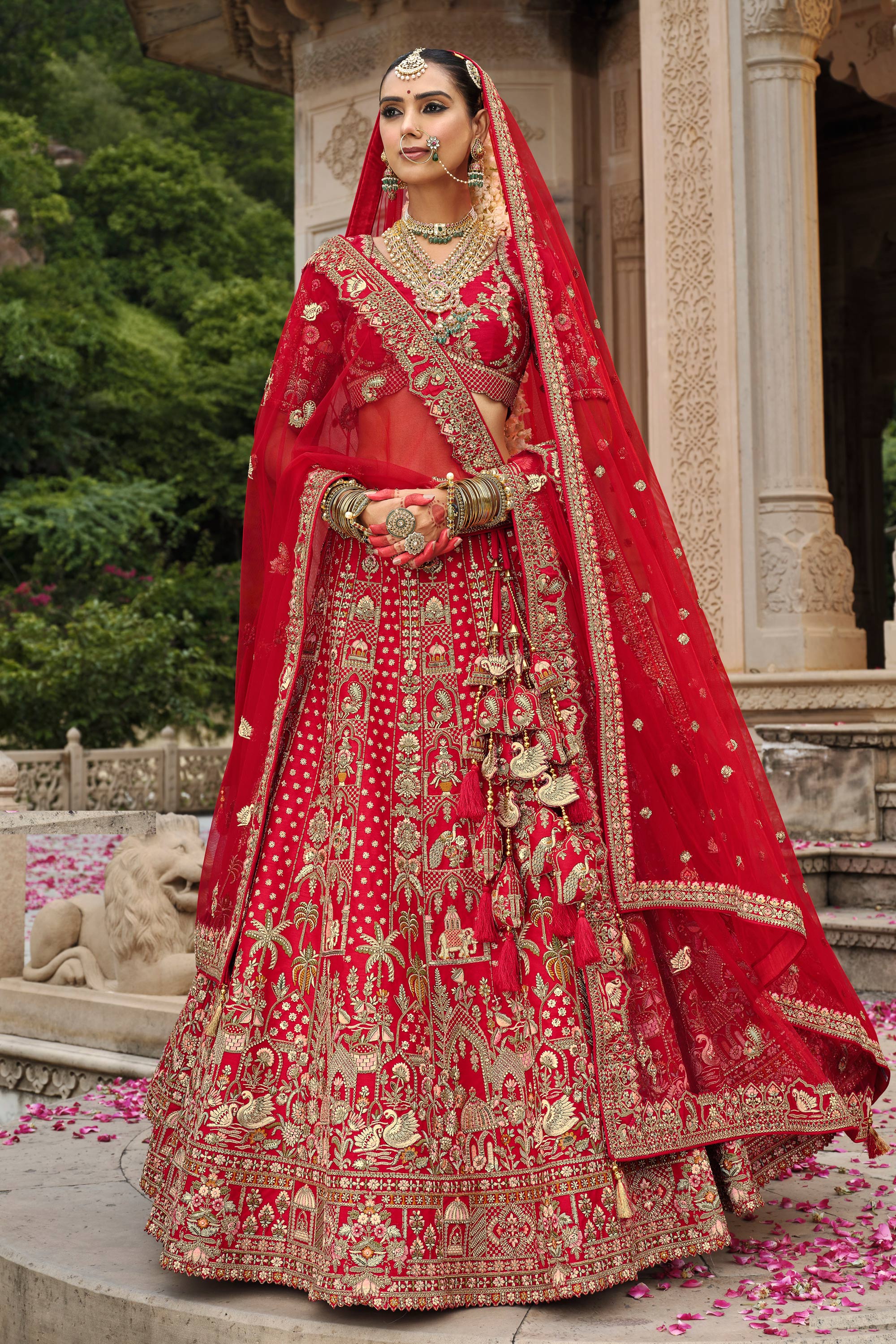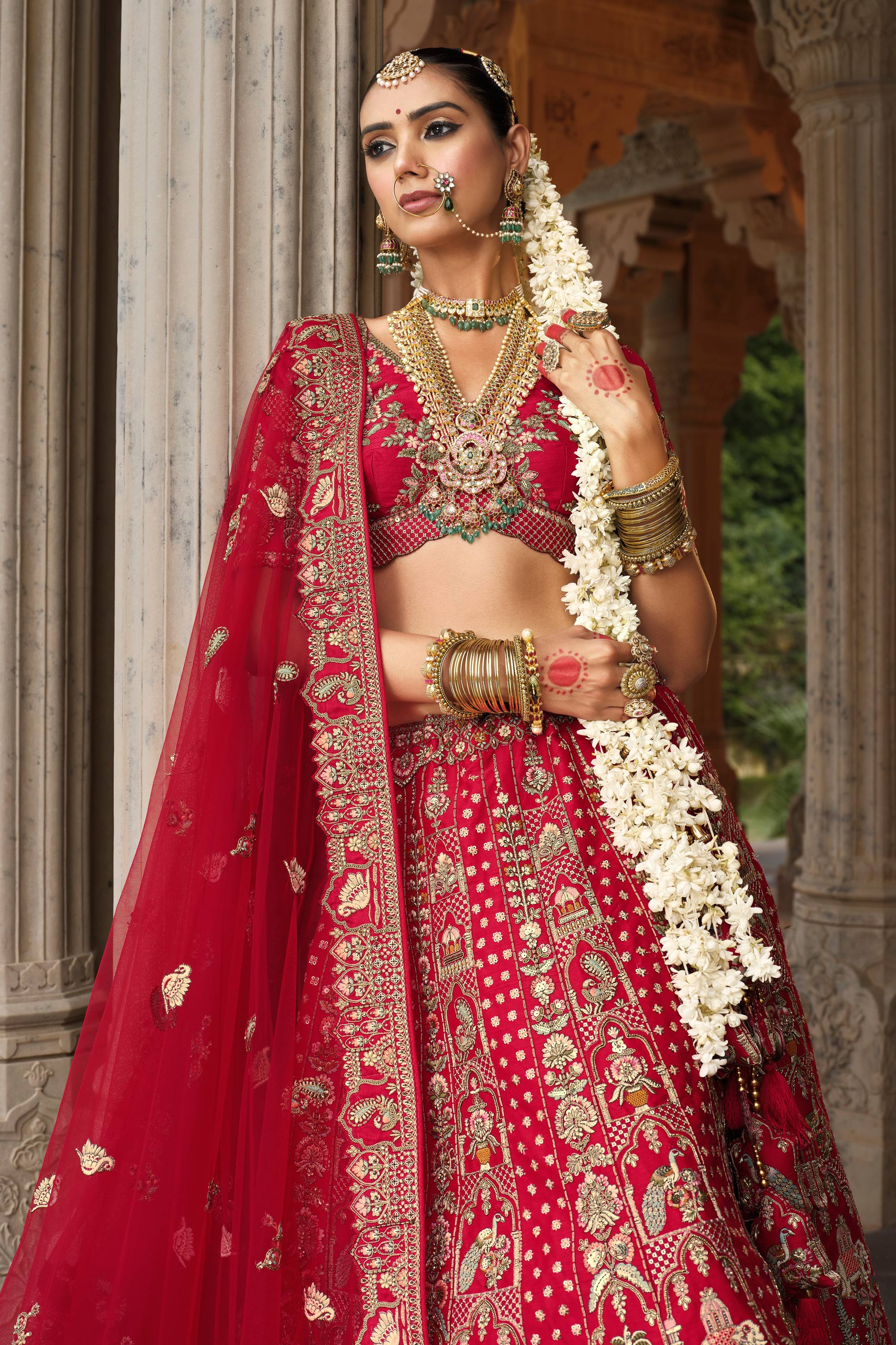 Elevate your wedding look with this stunning Silk Bridal Lehenga Set, complete with a beautifully crafted heavy embroidered blouse. Designed for brides who value tradition with a modern twist, this ensemble combines luxurious silk fabric with intricate detailing for an unmatched appearance. The vibrant colors and exceptional craftsmanship make this lehenga set ideal for weddings, receptions, or grand events. Its premium fabric ensures comfort throughout the day while enhancing your elegance. Transform your bridal wardrobe with this timeless creation that balances tradition and sophistication.