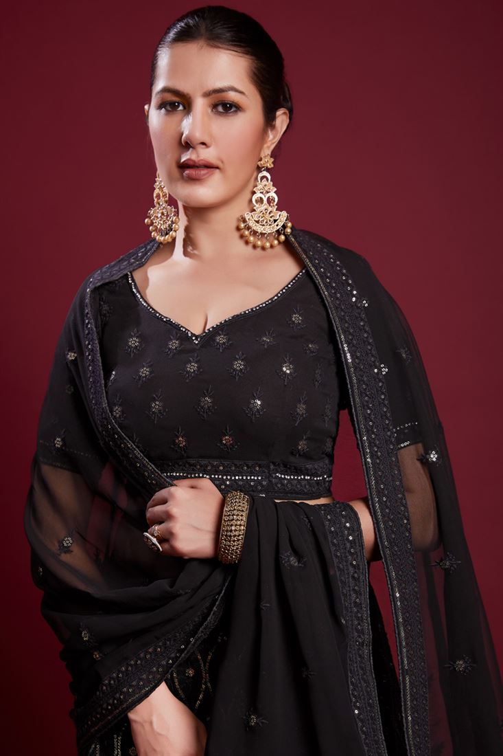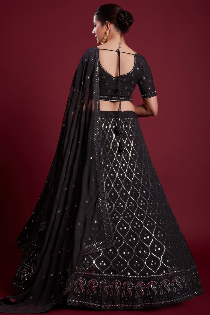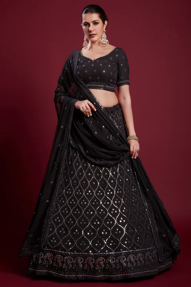 Regal Black Georgette Lehenga with Intricate Embroidered and Zarkan Work