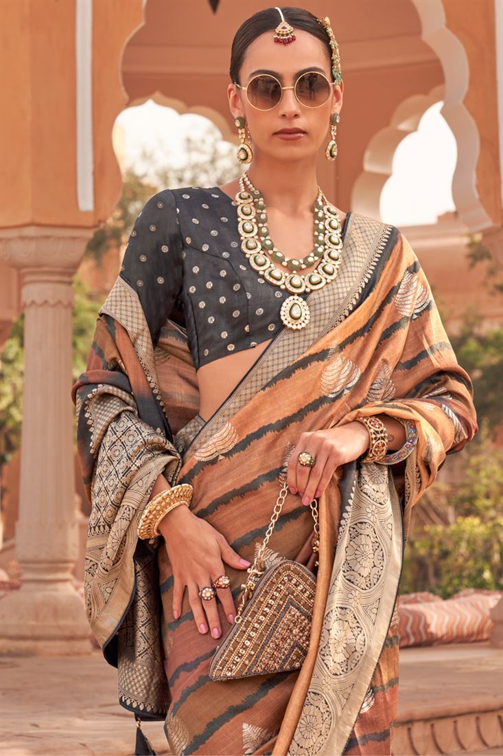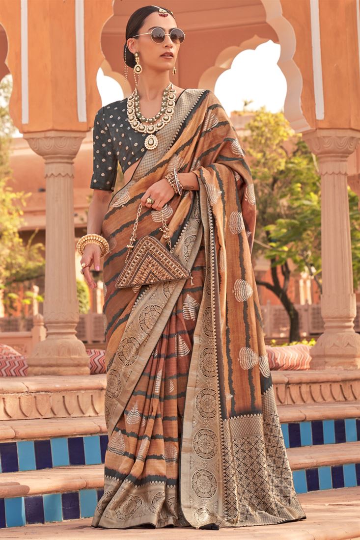 Introducing our exquisite Rust Color Function Saree, crafted with elegance and designed to make you stand out on any occasion. Made from premium Kachhi Silk fabric, this saree combines luxurious comfort with a touch of traditional charm.