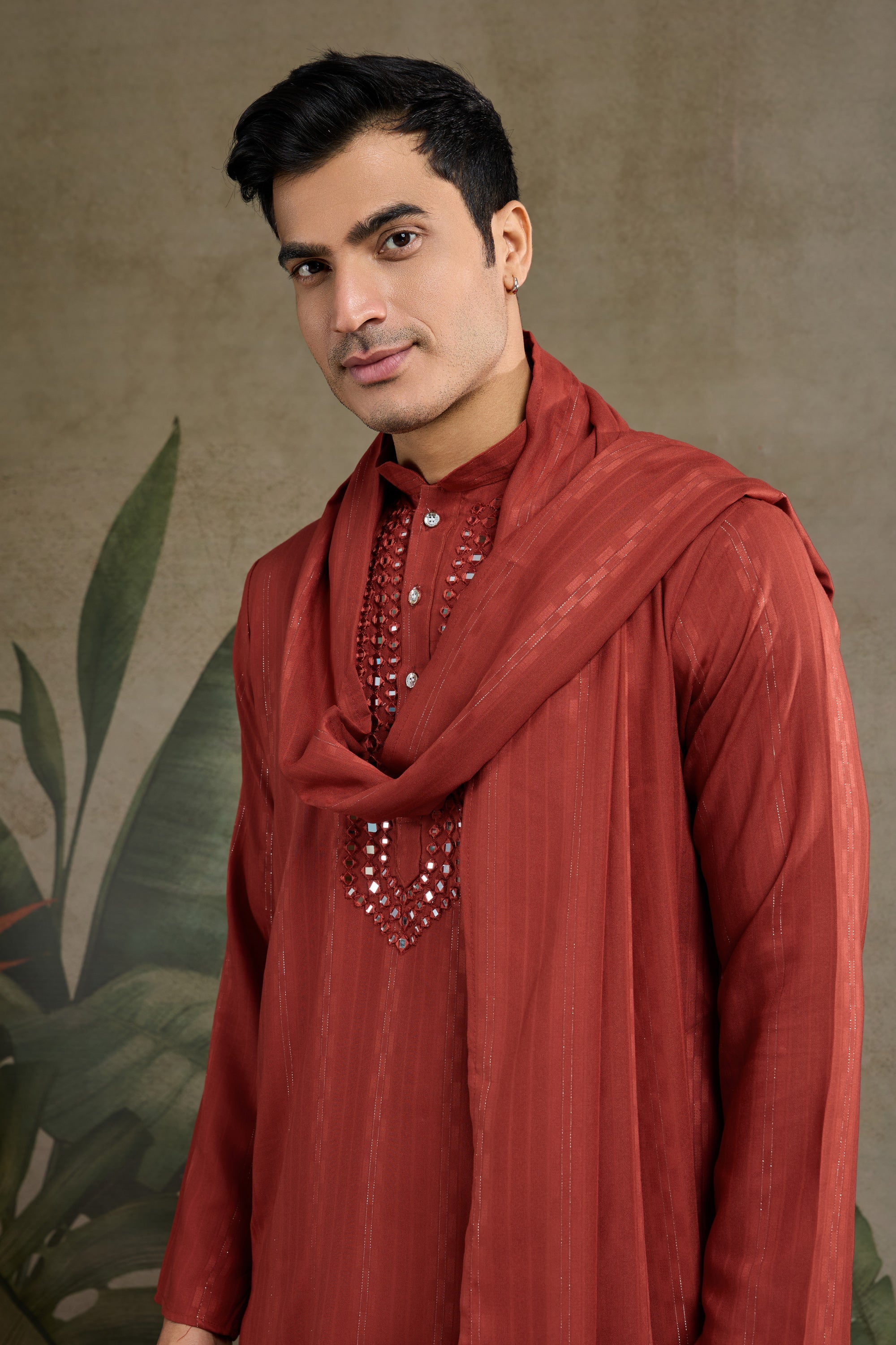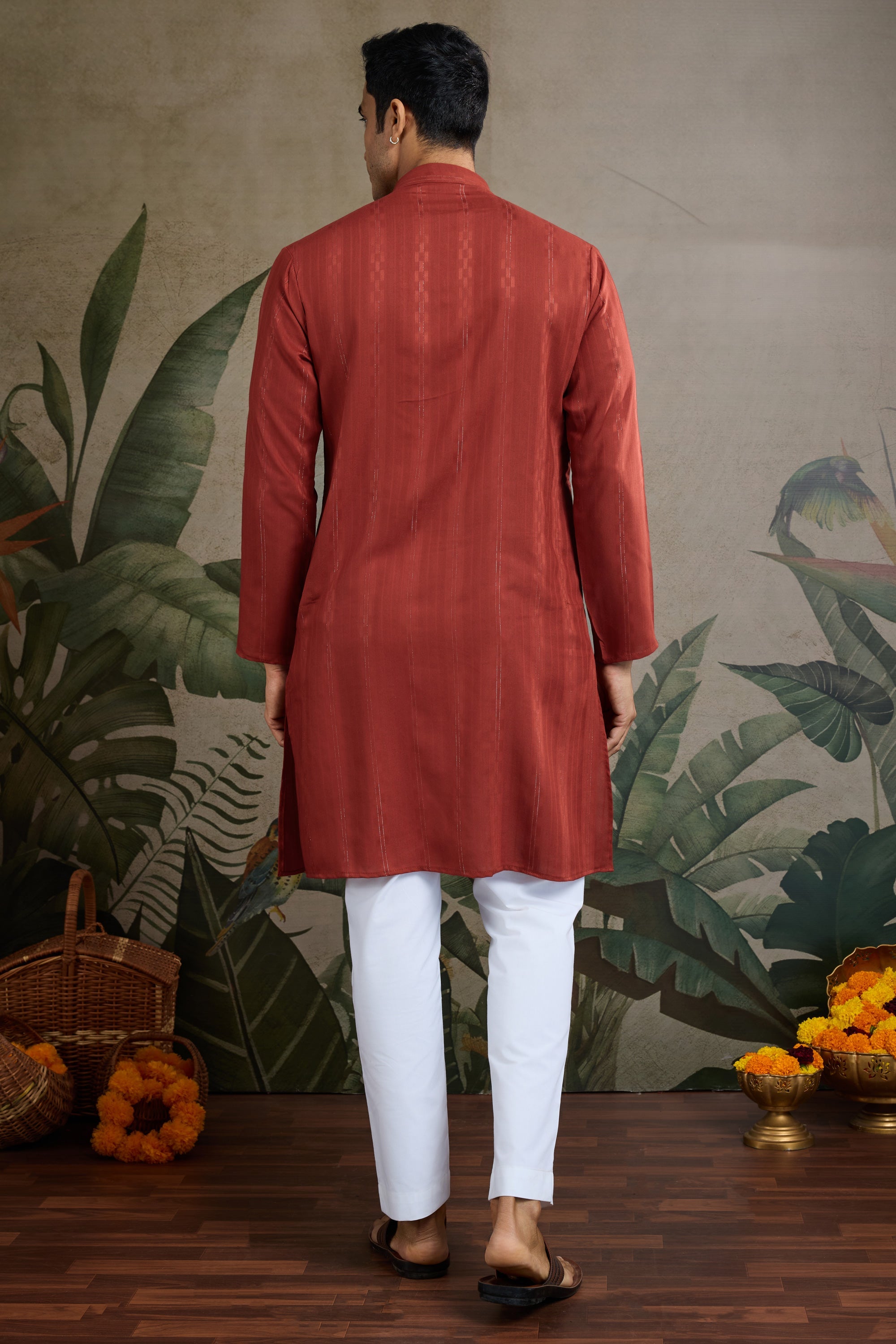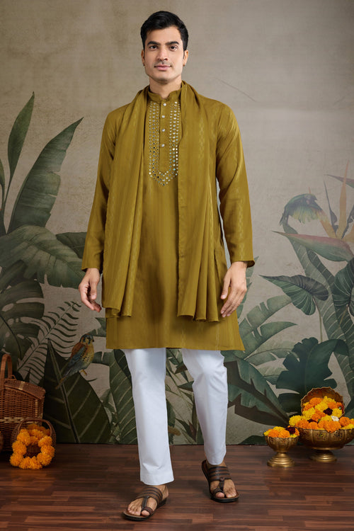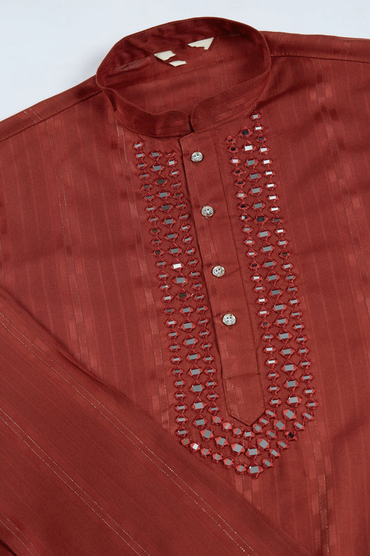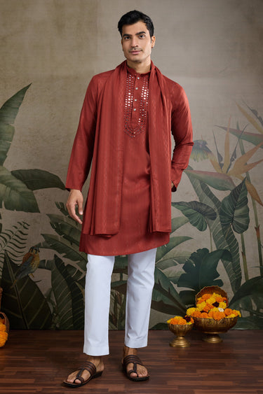 Rust Festive Wear Readymade Lovely Kurta For Men With Dupatta