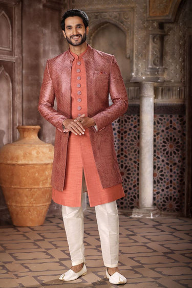 Rust Gorgeous Art Silk Fabric Readymade Indo Western For Men