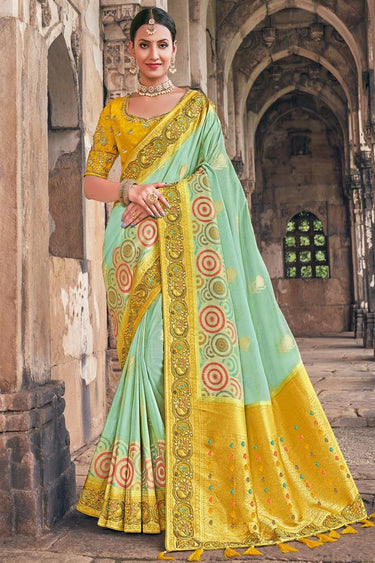 Sangeet Wear Captivating Art Silk Fabric Saree In Sea Green Color