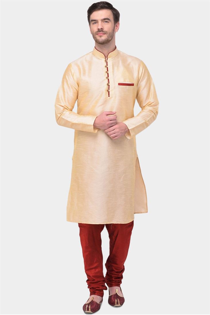Sangeet Wear Dhupion Silk Fabric Cream Color Sangeet Wear Kurta Pyjama