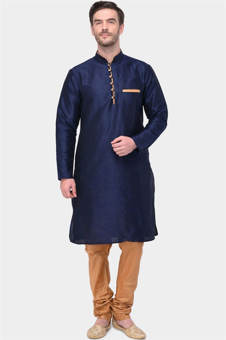 Sangeet Wear Dhupion Silk Fabric Navy Blue Color Kurta Pyjama