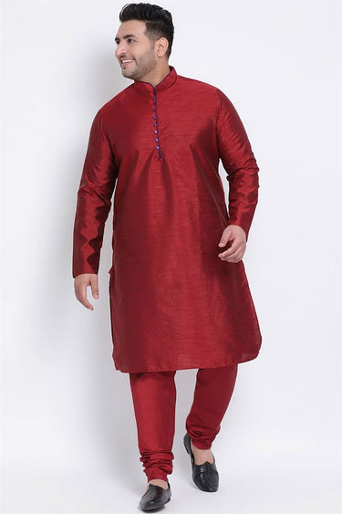 Sangeet Wear Maroon Plus Size Kurta Pyjama In Dhupion Silk Fabric