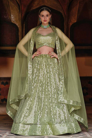 Sangeet Wear Net Fabric Khaki Color Sequins Work Extravagant Lehenga
