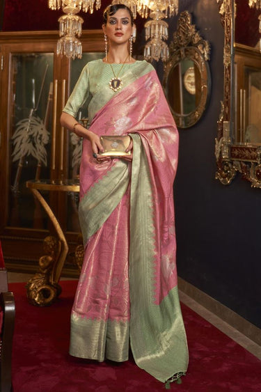 Sangeet Wear Pink Color Saree With Dazzling Weaving Work In Art Silk Fabric
