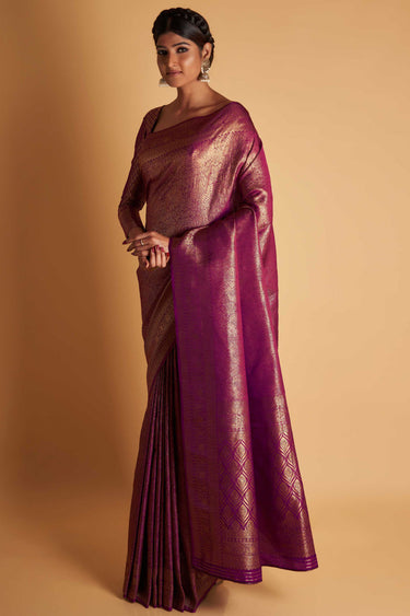 Sangeet Wear Purple Color Two Tone Kanjivaram Silk Fabric Weaving Work Saree