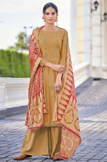 Satin Georgette Fabric Sangeet Wear Orange Color Palazzo Suit