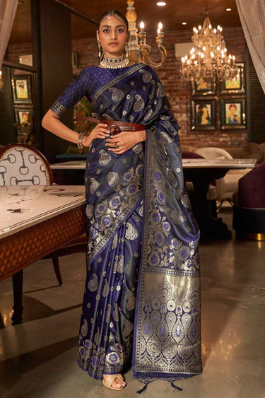 Satin Silk Fabric Purple Color Weaving Work Delicate Saree