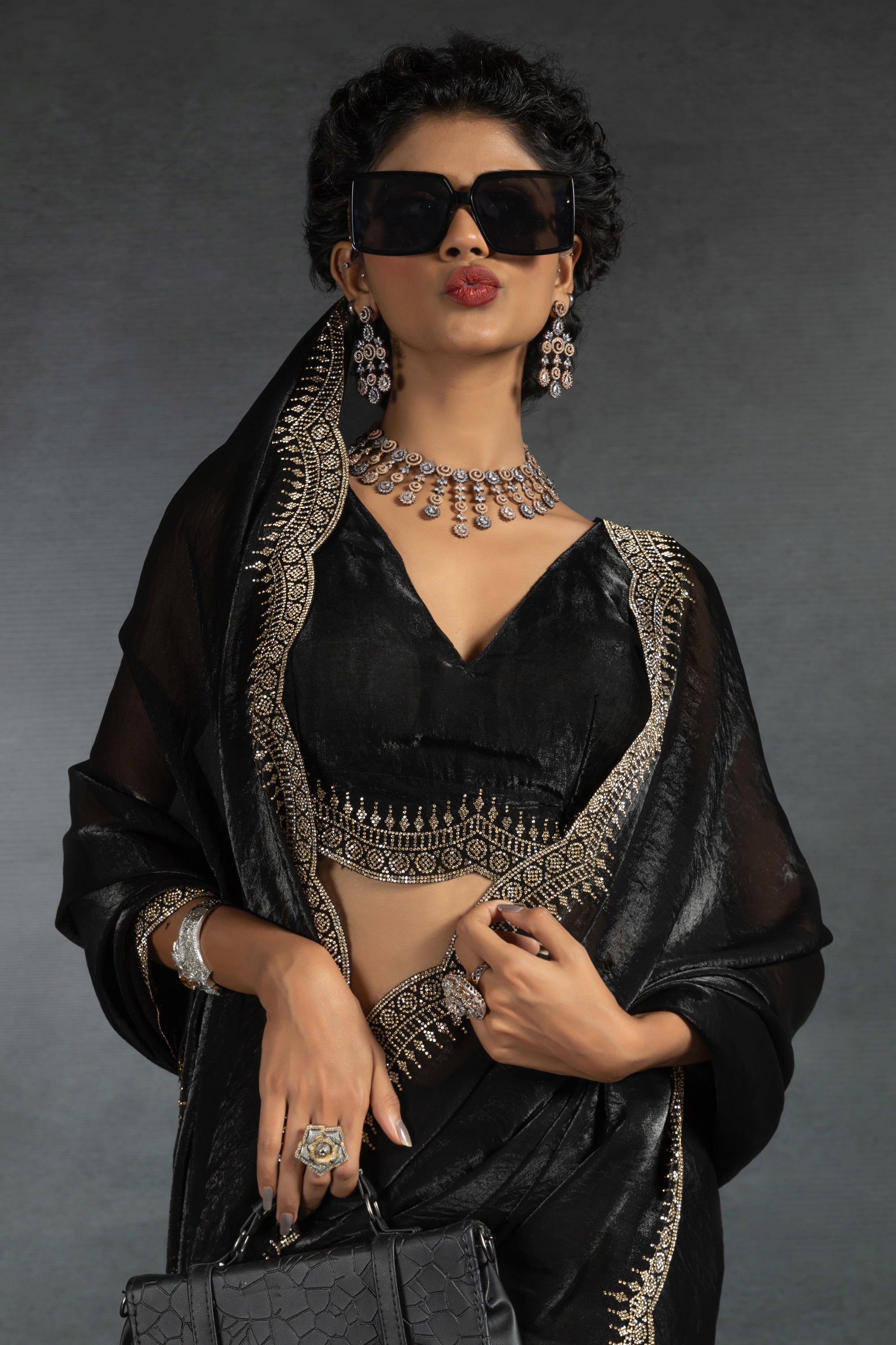 Elevate your evening attire with this exquisite satin silk saree. Crafted for elegance, this saree features an intricate stone border that adds a touch of luxury to its already sumptuous texture. The rich color exudes sophistication, making it the perfect choice for any special occasion. Drape yourself in the opulent satin silk and experience comfort along with style. Ideal for parties, weddings, or festive celebrations, this saree is designed to make you the center of attention.