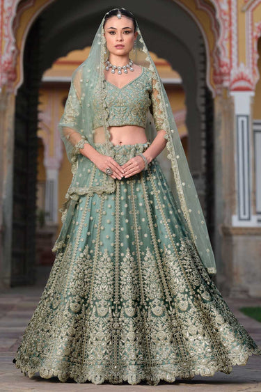 Sea Green Color Alluring Embroidered Lehenga Choli In Net Fabric