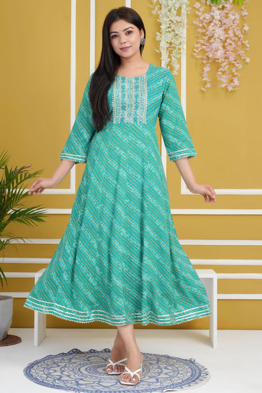 Sea Green Color Cotton Rayon Fabric Chic Readymade Kurti