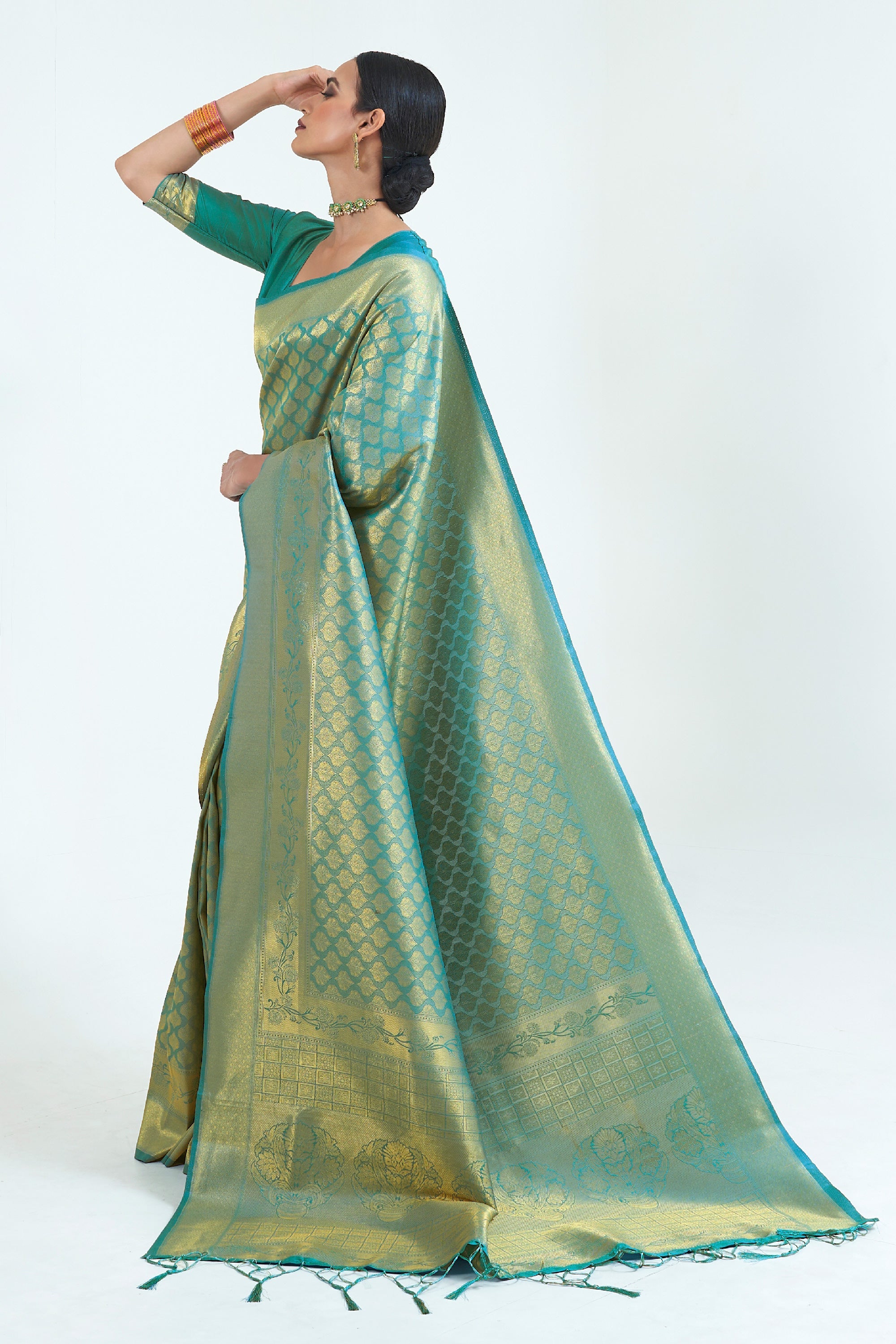 Sea Green Color Creative Pure Weaving Silk Saree With Handloom Pallu
