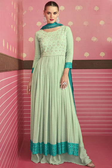 Sea Green Color Georgette Fabric Awesome Embroidered Work Palazzo Suit