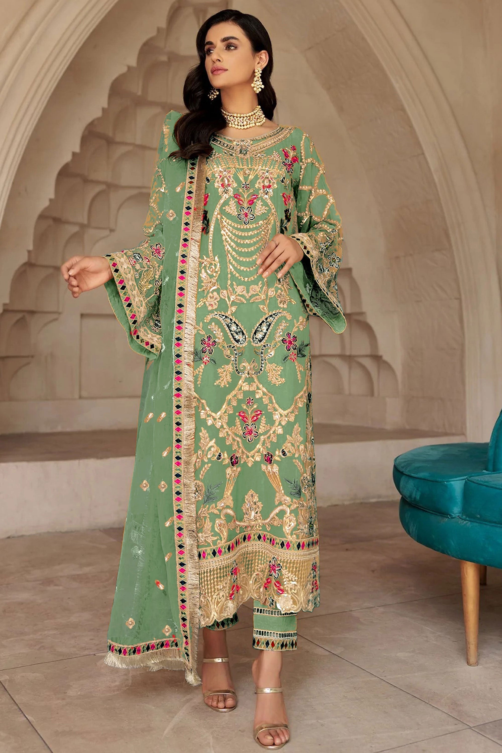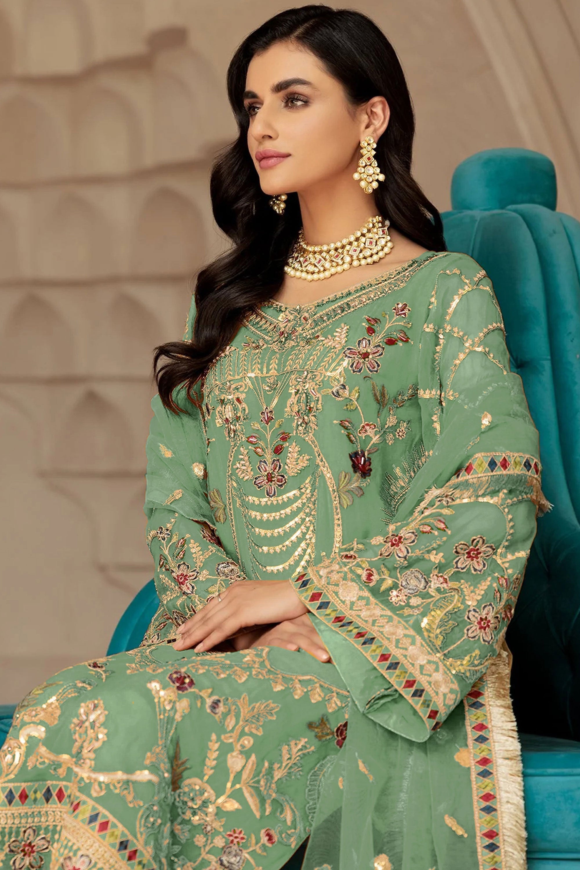 Sea Green Color Georgette Fabric Classic Pakistani Replica Suit