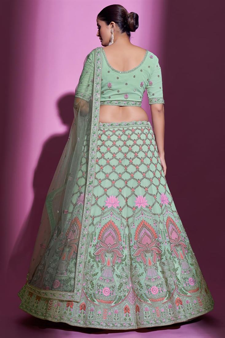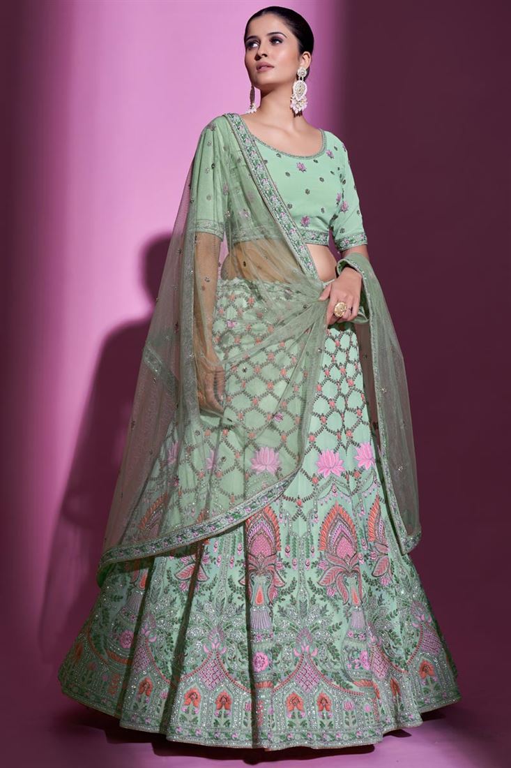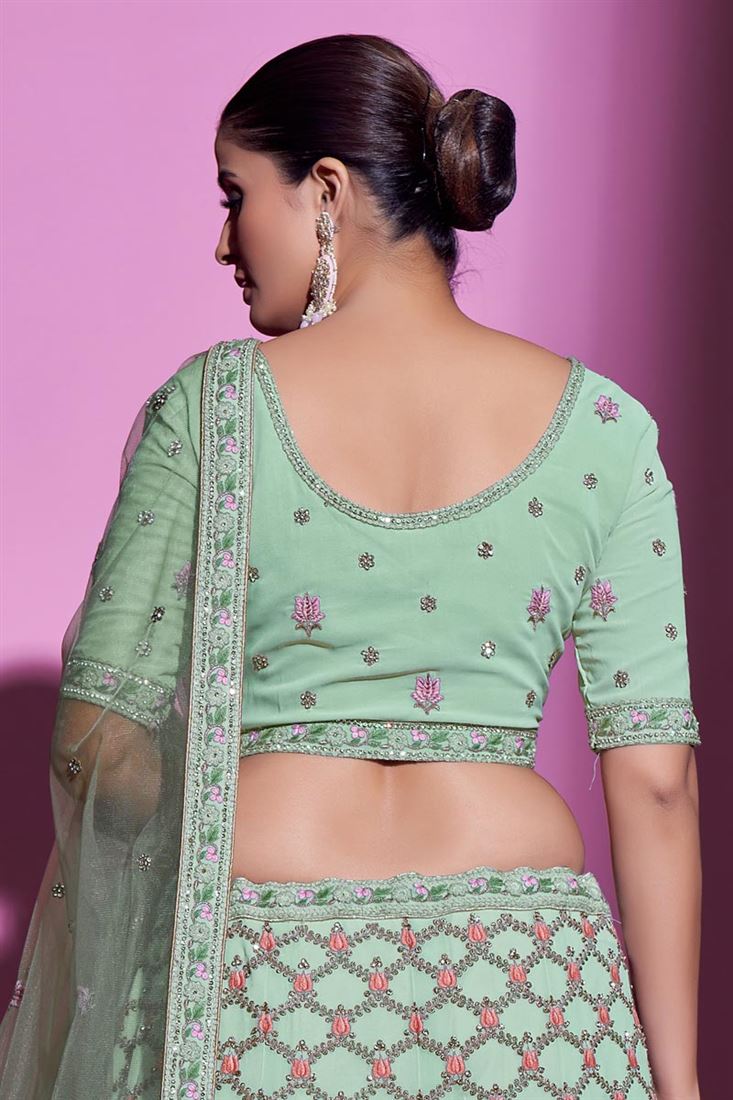 Sea Green Color Georgette Fabric Wedding Wear Beautiful Lehenga Choli
