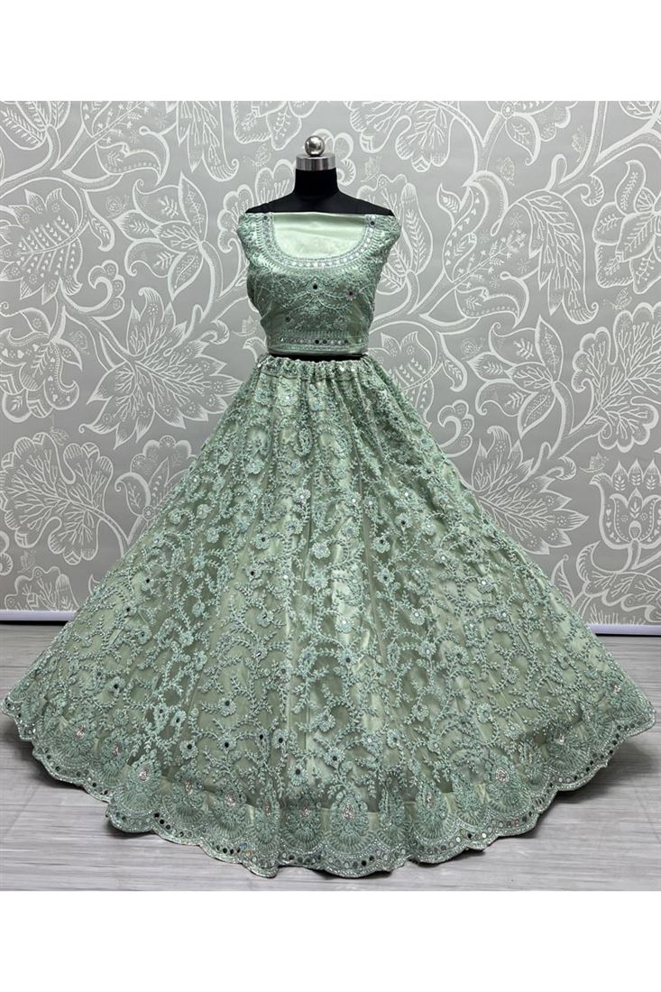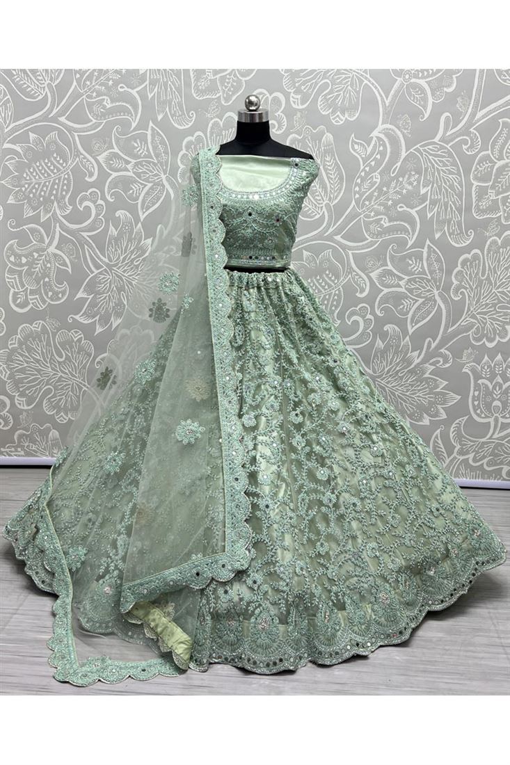 Sea Green Color Glorious Embroidered Designs Net Bridal Lehenga
