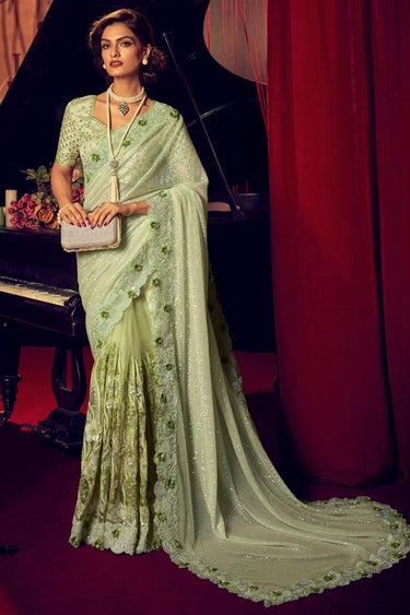Sea Green Color Net Fabric Party Style Luminous Saree