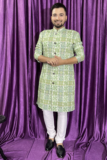 Sea Green Color Readymade Kurta Pyjama For Men In Cotton Fabric