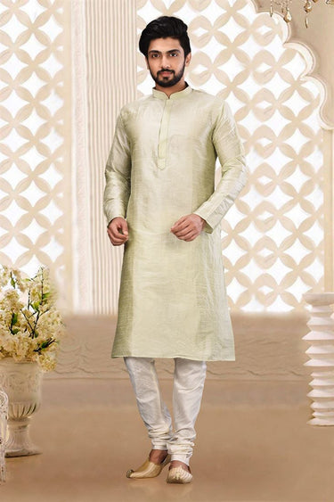 Sea Green Color Sangeet Wear Art Silk Fabric Designer Readymade Kurta Pyjama For Men
