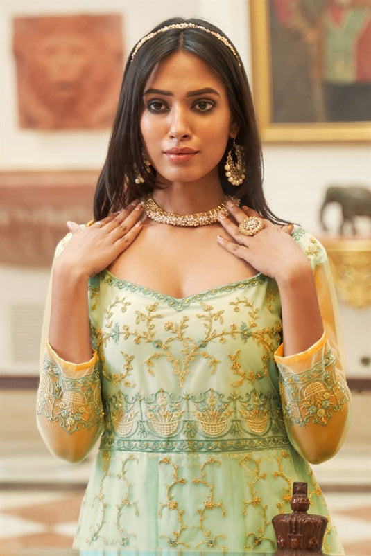 Sea Green Color Sangeet Wear Elagent Look Anarkali Suit
