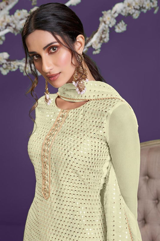 Sea Green Color Splendid Embroidered Sharara Suit In Georgette Fabric