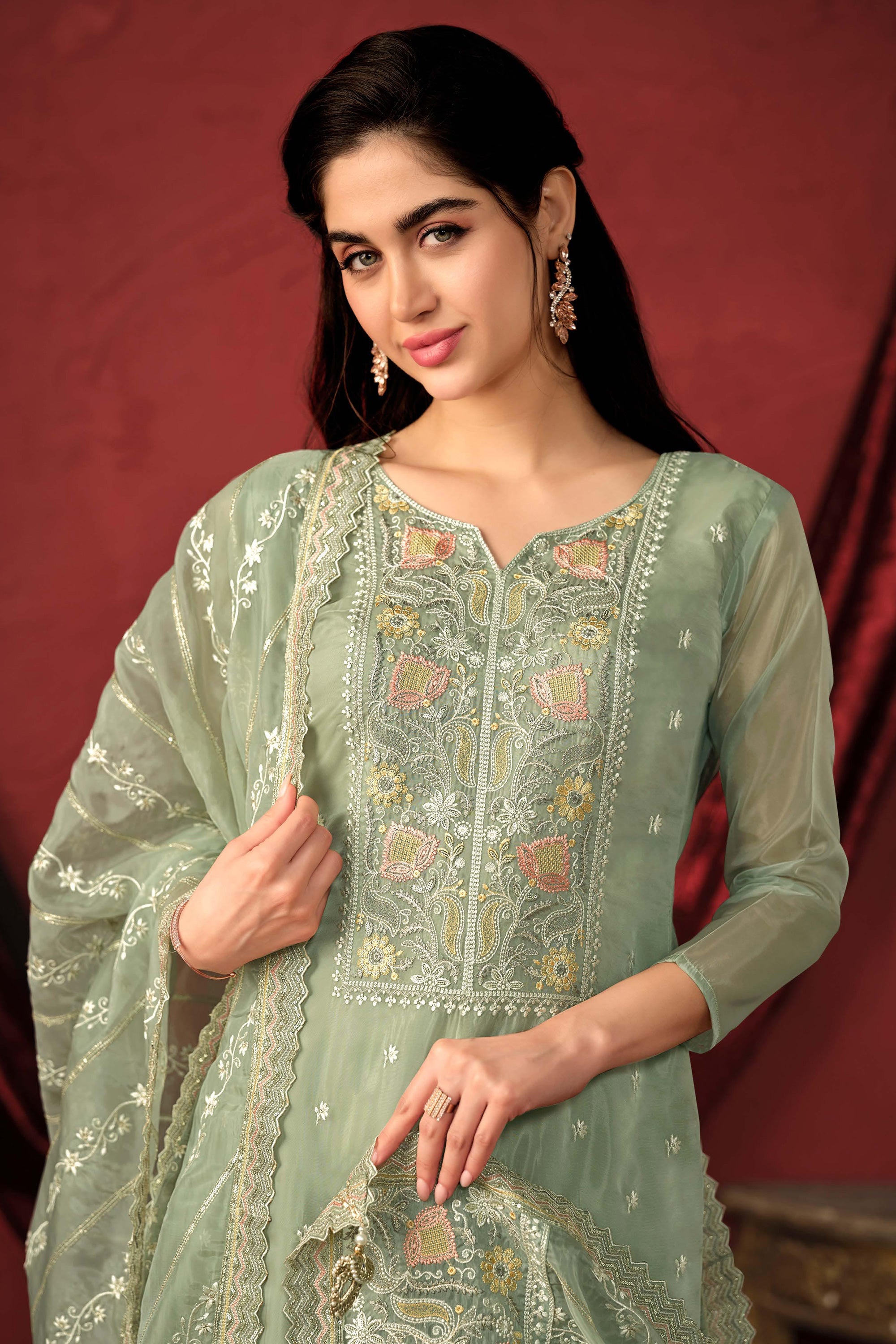 Elevate your event style with the Reach Color Organza Embroidered Straight Cut Suit For Function Wear. This stunning suit boasts delicate embroidery work on premium organza material, creating a look that is both sophisticated and stylish. The straight cut design provides a sleek and polished appearance, making it suitable for various formal functions. This suit can be accessorized effortlessly to match your personal style, ensuring you look your best at any gathering. Choose from a range of sizes for a comfortable and tailored fit.