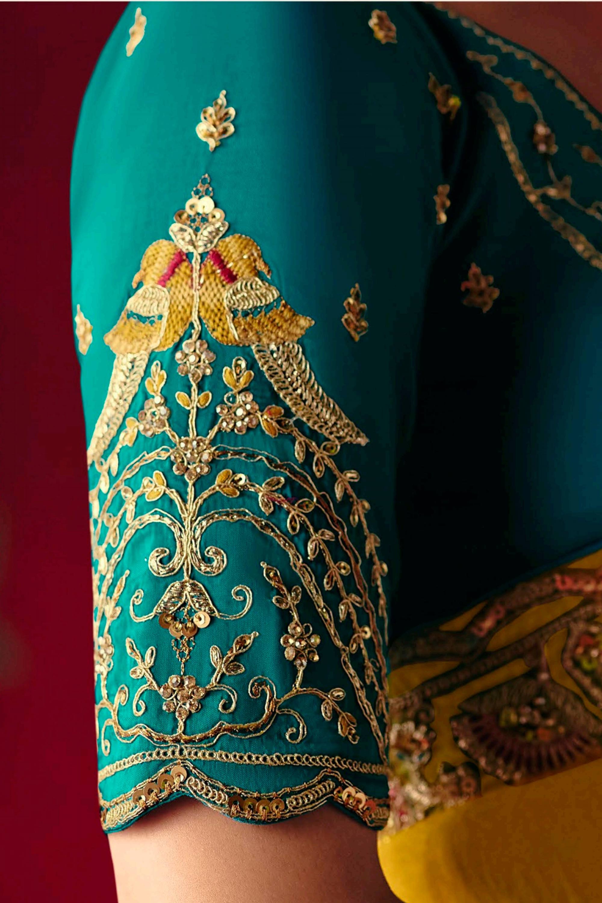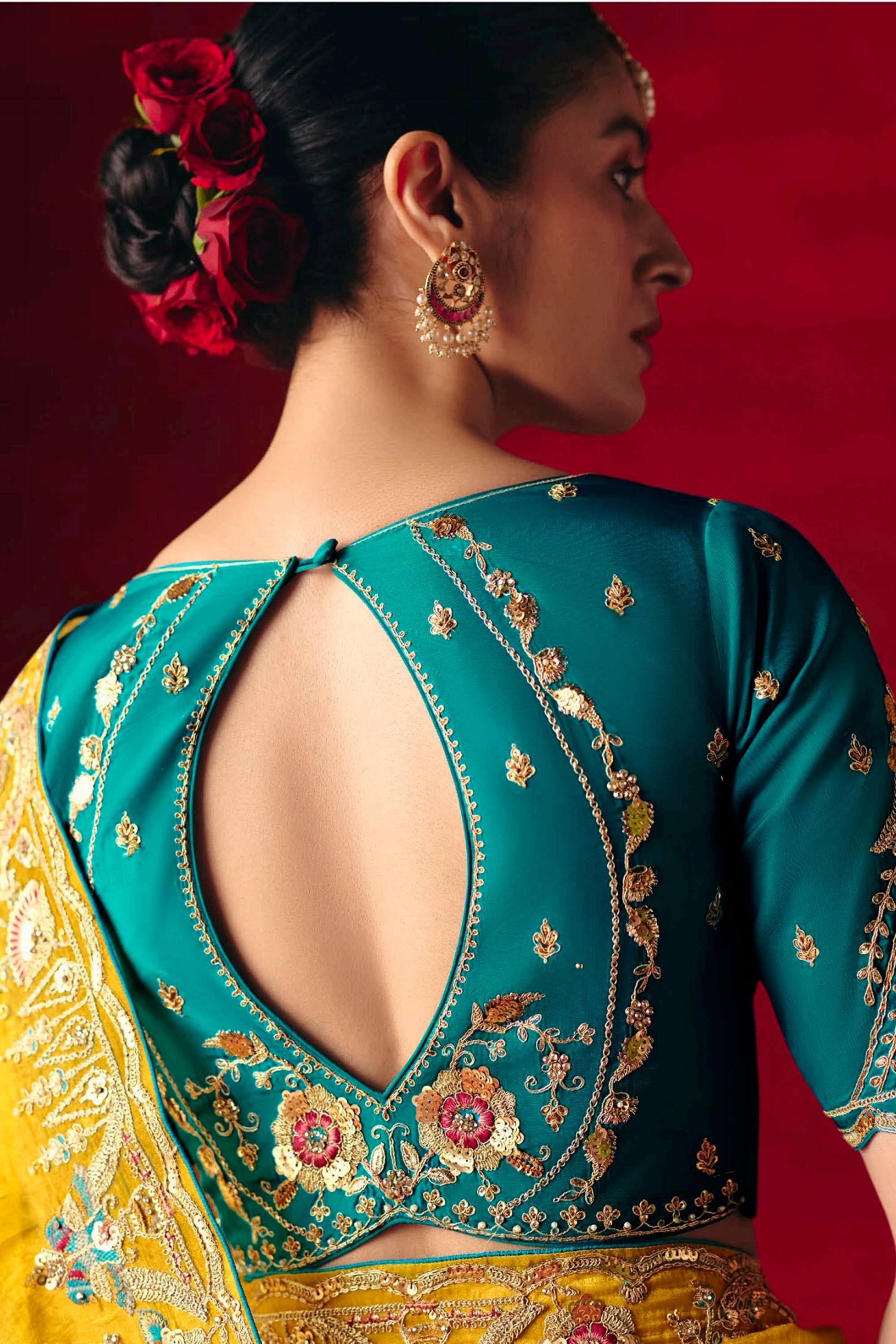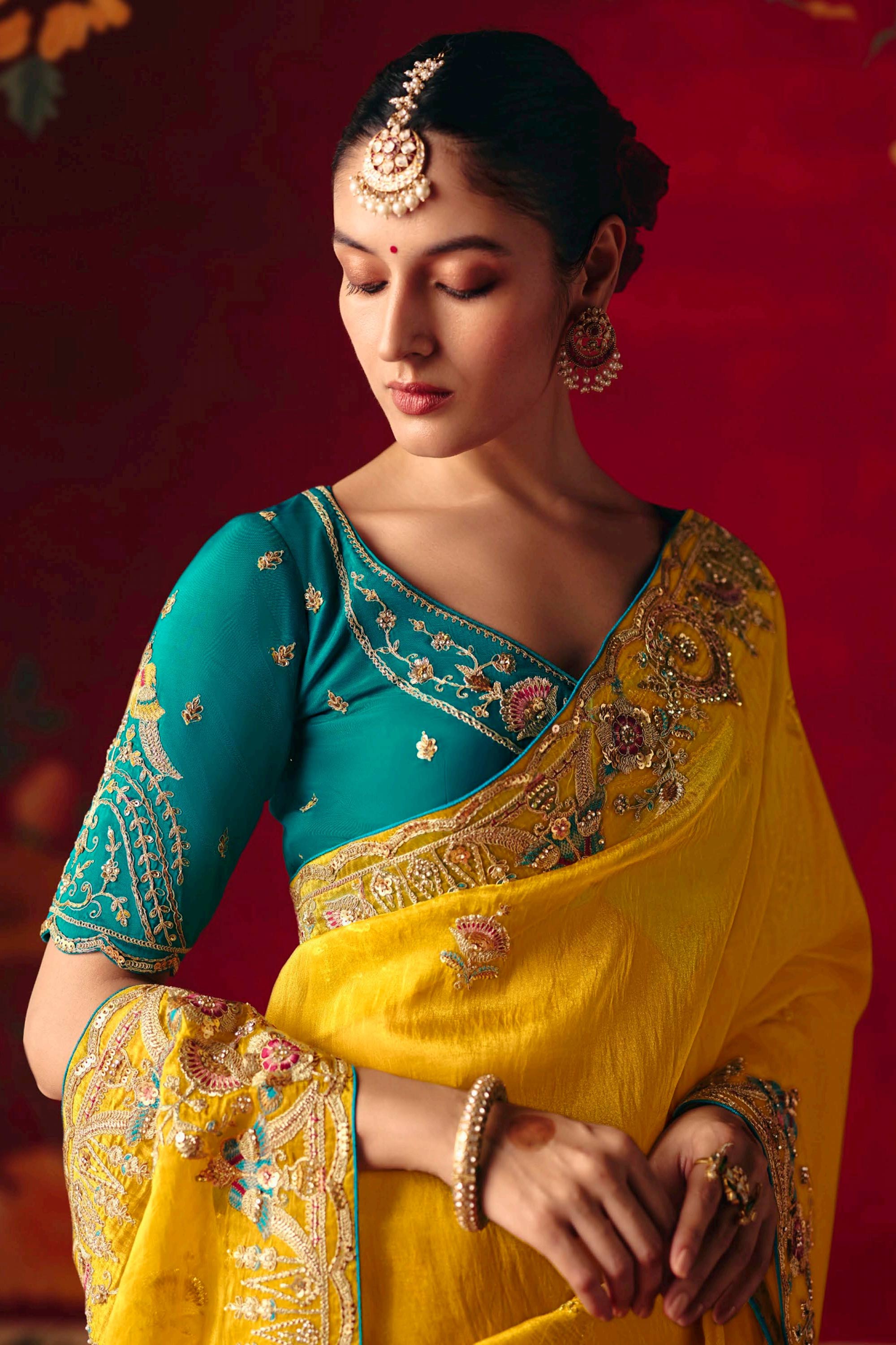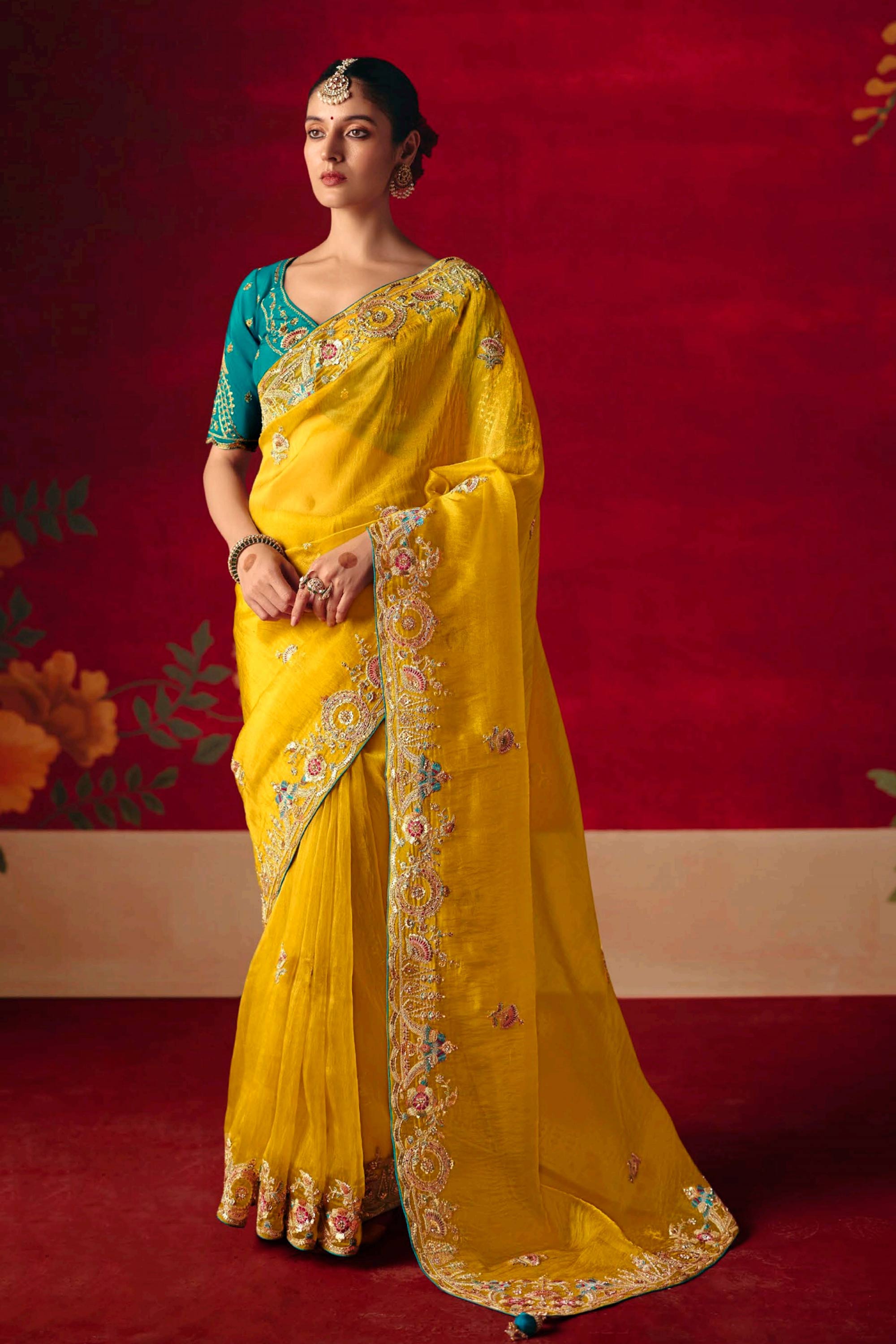 Sequins Embroidered Art Silk Yellow Saree For Wedding Wear
