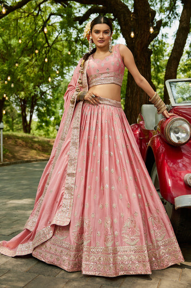 Sequins Embroidered Pink Chiffon Wedding Lehenga Choli