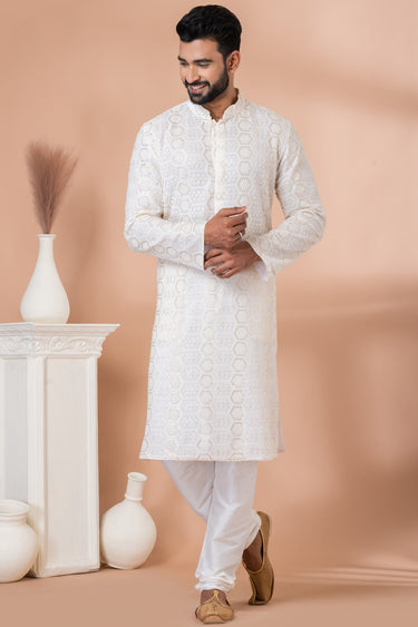 Sequins Embroidery White Georgette Graceful Readymade Men Kurta Pyjama For Festive Wear