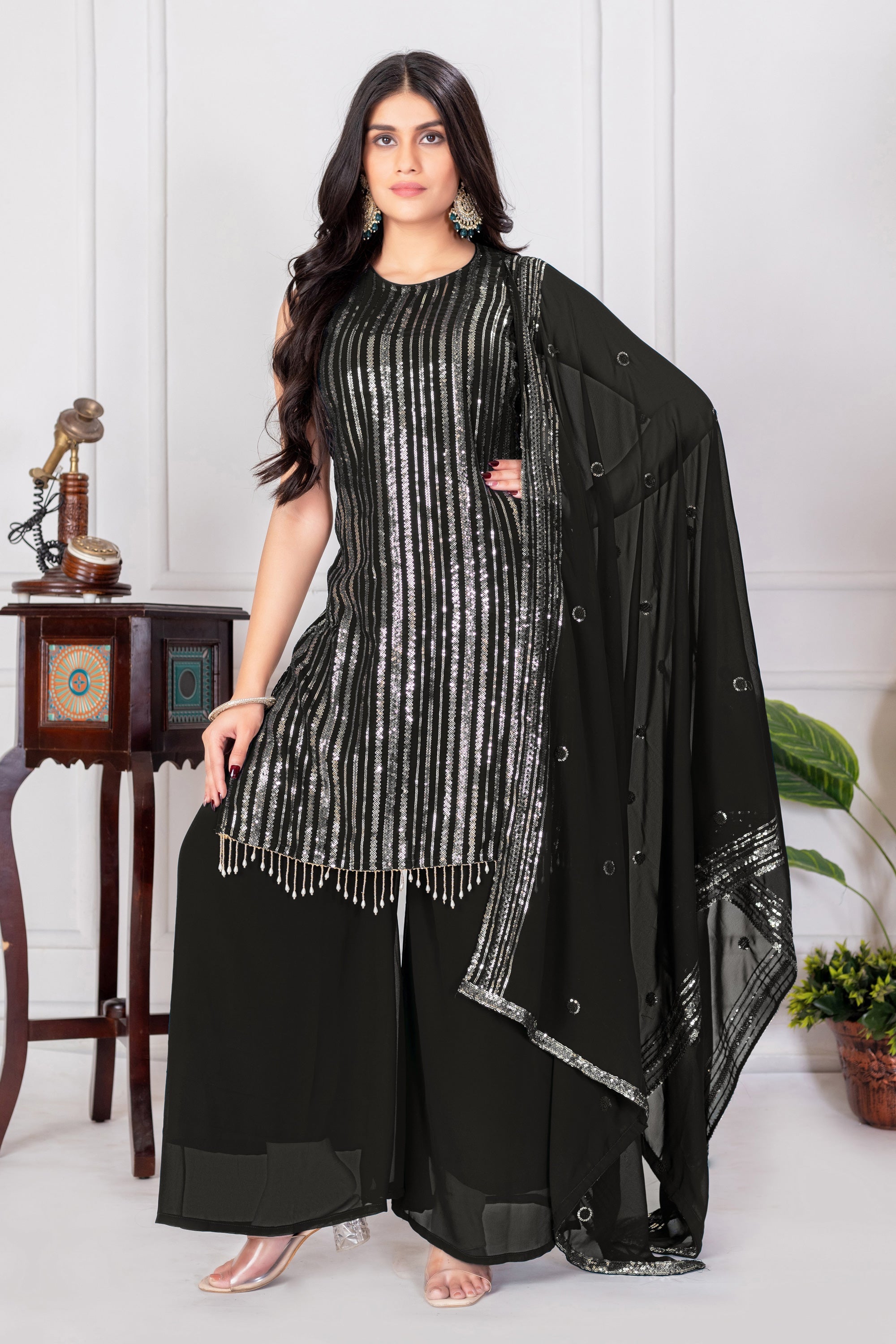 Sequins Work Black Readymade Palazzo Salwar Suit