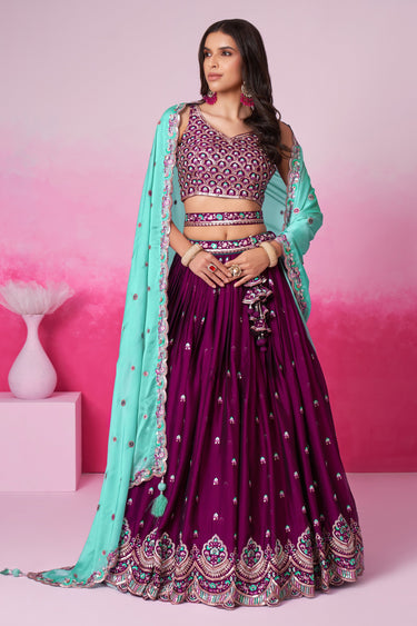 Sequins Work On Burgundy Georgette Fabric Occasion Wear Lehenga Choli